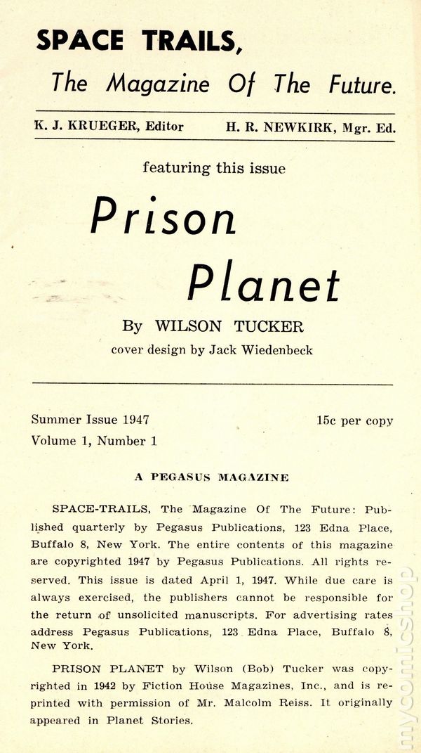 Published Jun 1947 by Pegasus Publishing.$5.00