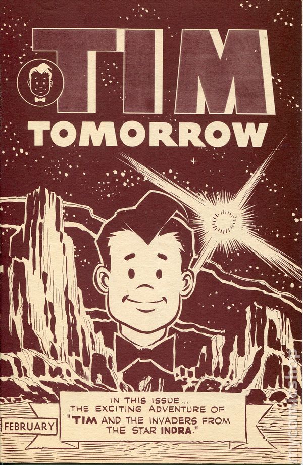 February 1952. Previously Tim in Space (1950 Tim's Official Store). A boy's activity book featuring a 'Tim Tomorrow' sci-fi comic story. "The Adventures of Tim Tomorrow in X-L4, The City of the Future" - Story and Art by Norman Maurer. B&W with a single color, 5 1/2 in. x 8 in. 16 pages.
