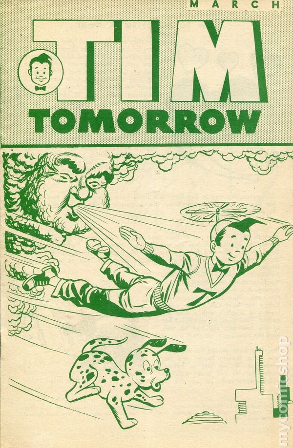 March 1952. Previously Tim in Space (1950 Tim's Official Store). A boy's activity book featuring a 'Tim Tomorrow' sci-fi comic story. "The Adventures of Tim Tomorrow in X-L4, The City of the Future" - Story and Art by Chic Stone. B&W with a single color, 5 1/2 in. x 8 in. 16 pages.