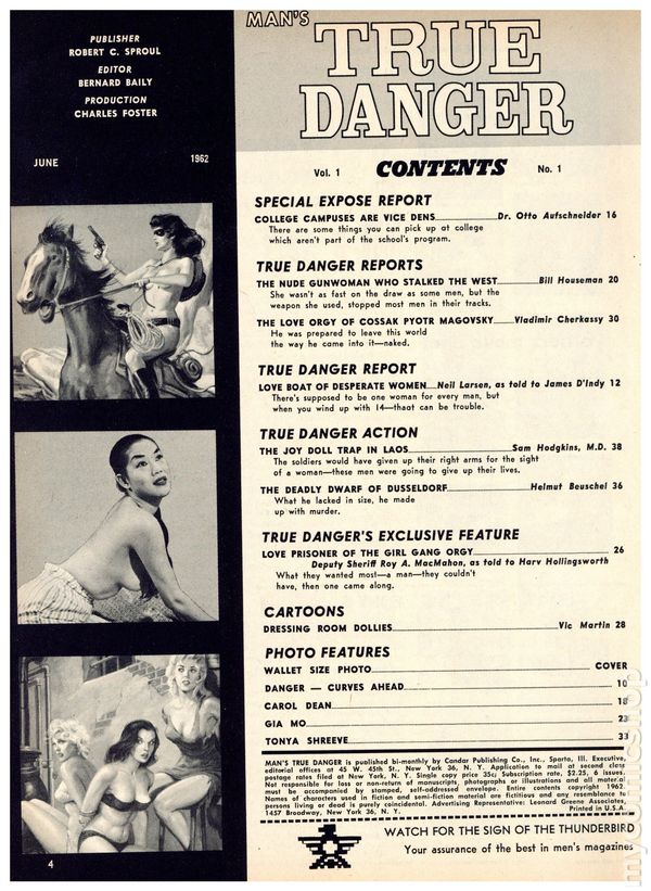 June 1962. Men's magazine with fiction, cartoons and pictorials. 8-in. x 10 3/4-in., 66 pages, B&W and partial color. Mature readers. Cover price $0.50.