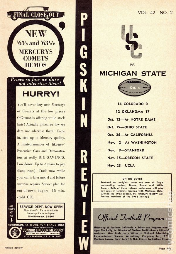 Official USC football program. 8" x 10.5", 44 pages, B&W Cover price $0.50.