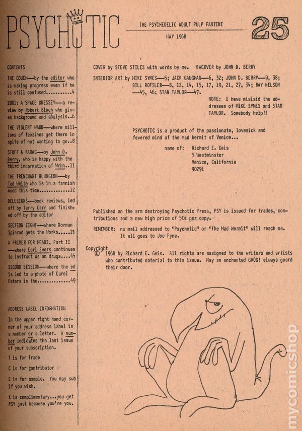 No. 25 - May, 1968. 8.5" x 11", 50 pages, B&W. Cover price $0.50.