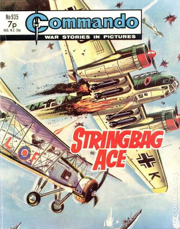$8 COMMANDO COMIC WAR STORIES IN PICTURES No.935 STRINGBAG ACE 1975 GN2504 $11 COMMANDO COMIC WAR STORIES IN PICTURES 1975 No.935 STRINGBAG ACE GN4325 Clicking on the links to the eBay listings shown above and then making a purchase may result in MyComicShop earning a commission from the eBay Partner Network.