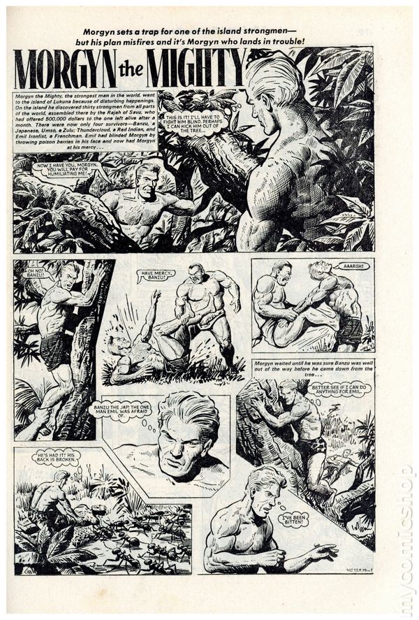 UK edition. Identical to US edition, but has 15p cover price. Scalphunter stars in "The Search." Script by Michael Fleisher, pencils by Dick Ayers, inks by Romeo Tanghal. Luis Dominguez cover.