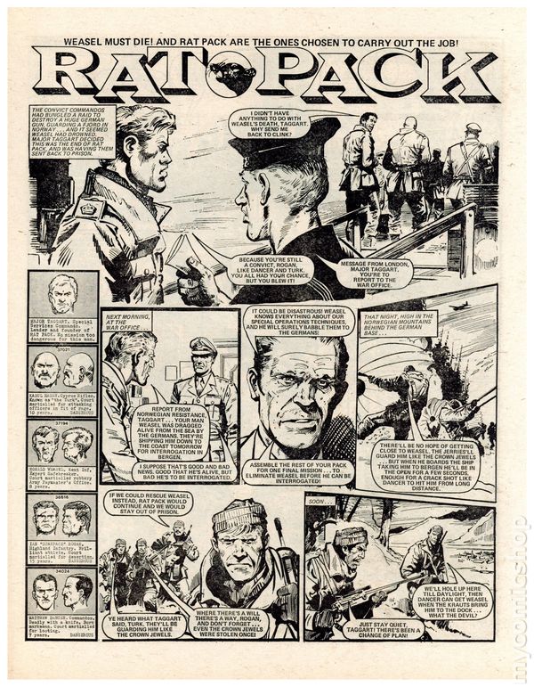 June 14, 1980. Features include Robo-Hunter in "Day of the Droids" (script T.B. Grover, art by Ian Gibson), Mach Zero (script by Ian Rogan, art by Mike Dorey), Judge Dredd in "The Judge Child" part 10 (script by John Howard, art by Ron Smith), the Mind of Wolfie Smith (script by Tom Tully, art by Jesus Redondo), and the V.C.s (script by Gerry Finlay-Day, art by Garry Leach). 2-page Star Wars: Empire Strikes Back photo feature. The Hanging Prisons of Sin-Sin back cover pin-up by Kevin O'Neill.