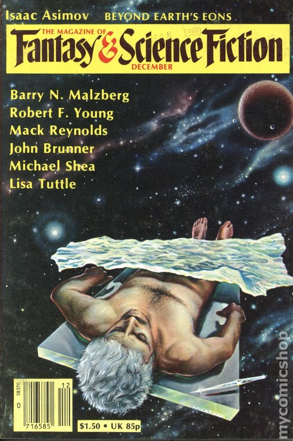 December 1980; whole number 355. Science fiction stories: "The Autopsy" by Michael Shea, "The Other Mother" by Lisa Tuttle, "Neander-Tale" by James P. Hogan, "Uncle John and the Saviour" by John Kessel, "Melpomene, Calliope...and Fred" by Nicholas Yermakov, "The Man with a God That Worked" by John Brunner, "The Twentieth Century Murder Case" by Barry N. Malzberg, "Escape Velocity" by Mack Reynolds, "Getting Into Synch" by Coleman Brax, and "The Tents of Kedar" by Robert F. Young. Cartoon by Gahan Wilson. Science article by Isaac Asimov. Cover by Ron Walotsky. 5-in. x 7-in., black and white; 160 pages. Cover price $1.50.
