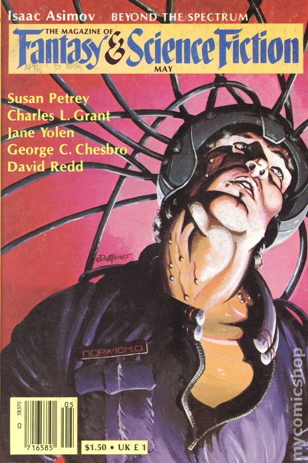 Volume 62, Issue 5 - May 1982. Cover by Rick De Marco. Fantasy and Science Fiction stories by Susan Petrey, Steve Vance, David Redd, L.A. Taylor, Gordon Linzner, Jane Yolen, Joseph Green, Patrice Milton, Charles L. Grant and George C. Chesbro. Science article by Isaac Asimov. Softcover. 5-in. x 7-in., 162 pages, text (with B&W illustrations). Cover price $1.50.