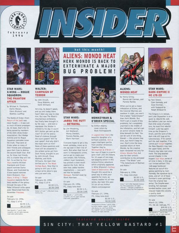 February 1996 - Star Wars - Frank Darabont on writing the new trilogy, Irvin Kershner on Empire building, special fiction guide; Babylon 5 - the anti-Trek; The Crow 2; Sylvester Stallone basks in Daylight. Boba Fett cover. Cover price $4.99.