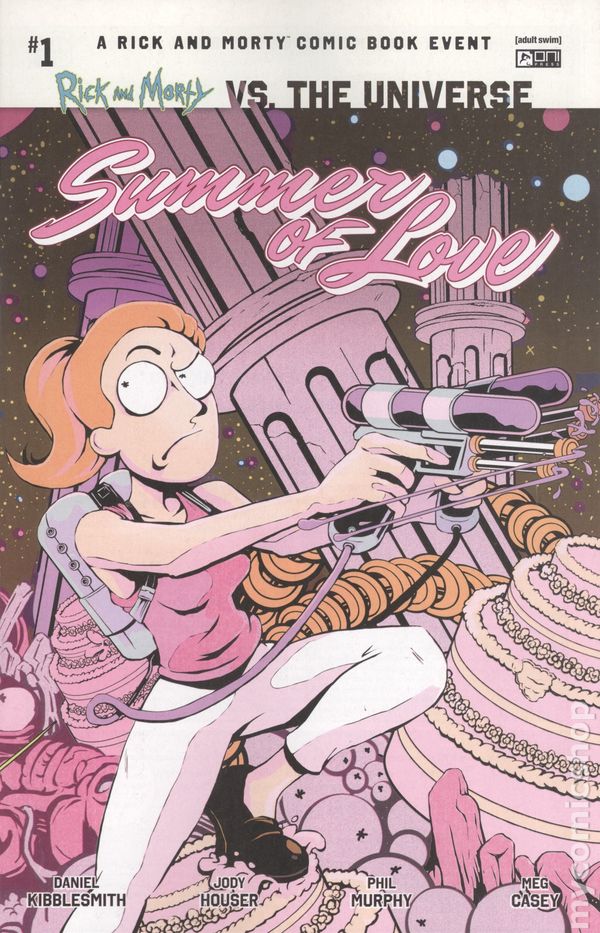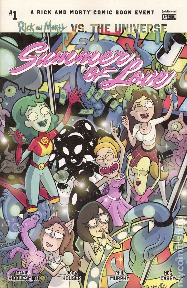 Written by Daniel Kibblesmith, Jody Houser. Art by Phil Murphy. Cover by Troy Little. A RICK AND MORTY VS. THE UNIVERSE TIE-IN EXTRAVAGANZA! Get your tiny tiara on, because universal destructors Daniel Kibblesmith (Loki) & Jody Houser (Stranger Things) are teaming up with artist Phil Murphy (Star Trek vs. Transformers) to send Summer rocketing into a Smith family crisis with cosmic implications!  Rick and Morty are doing their bachelor party thing with Prime Universe, so Summer decides to throw her own bachelorette shindig for Parmesan! No naughty gummies or pennysaver strippers here—Summer will throw a bachelorette party to remember, complete with debauchery, violence, and destruction! Hey, gurl, hey, this will end well! (News flash: It wont.) 28 pages, full color. Rated M Cover price $4.99.