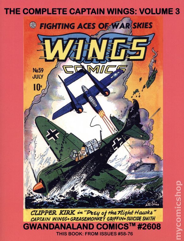 Volume 2608 - 1st Printing. "The Complete Captain Wings Volume 3!" Collects Wings Comics (1940) #58-76. These budget friendly reprints of classic western sci-fi, horror, and adventure comics feature some of the best in public domain comic book reprints. Softcover, 8 1/2-in. x 11-in., 228 pages, B&W.