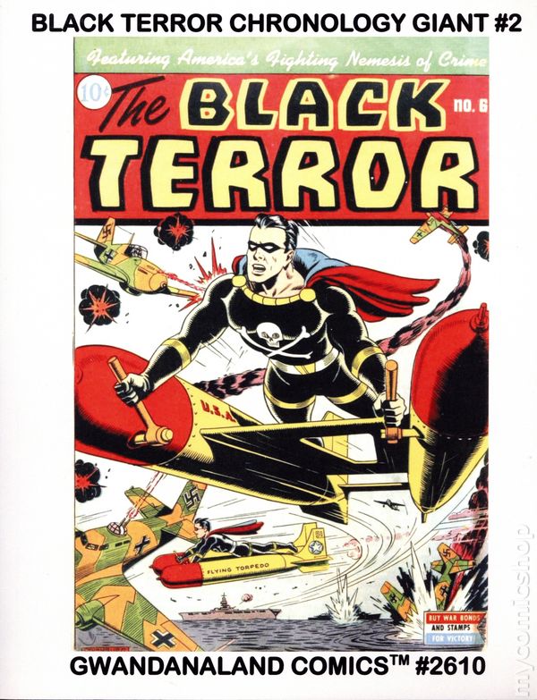 Volume 2610 - 1st Printing. "Black Terror Chronology Giant Volume 2!" Collects Exciting Comics (1940) #28-38, America's Best Comics (1942) #6-13, and Black Terror (1942 Better Publications) #4-10. These budget friendly reprints of classic western sci-fi, horror, and adventure comics feature some of the best in public domain comic book reprints. Softcover, 8 1/2-in. x 11-in., 516 pages, B&W.