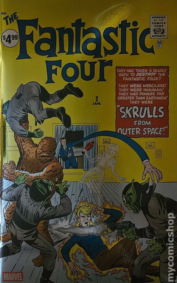 Foil Cover. Written by Stan Lee. Art by Jack Kirby. Cover by Jack Kirby. Continuing a facsimile collection of the foundational adventures of Marvel's First Family! Disaster strikes as the FF are declared bankrupt, faced with having to sell their skyscraper home and all Reed Richards' remarkable inventions. But salvation arrives in the form of a one-million- dollar offer to head to Hollywood and make a Fantastic Four movie! Who could be the wealthy studio mogul financing the flick? Why, it's their old sparring partner Namor! But has Subby really set his sights on silver-screen success? Or is this all part of some scheme to get revenge on the FF - and to win the heart of his leading lady, Susan Storm? It's one of the all-time great Marvel comic books, boldly re-presented in its original form, ads and all! Reprinting FANTASTIC FOUR (1961) #9. Marvel is reprinting the first twelve issues of FANTASTIC FOUR as they originally appeared! 32 pages, full color. Cover price $4.99.