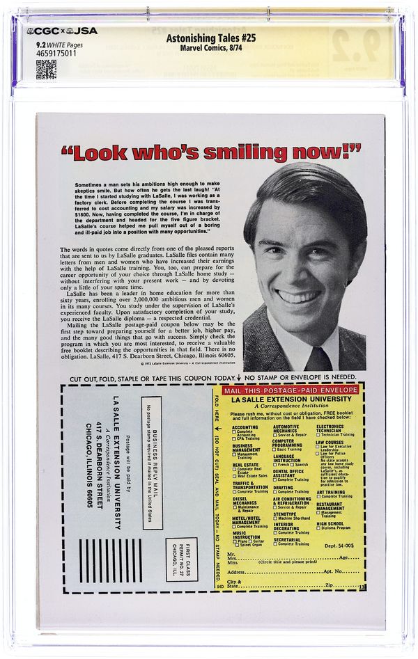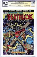 This issue not only marks George Perez's first pro comic art, but the first appearance of Deathlok! Cover pencils by Rich Buckler, inks by Klaus Janson. A Cold Knight's Frenzy, script by Rich Buckler (Plot; Concept) and Doug Moench (Script), pencils by Rich Buckler, inks by Rich Buckler (Primary Inks), Klaus Janson (Ink Assist), Al Milgrom (Ink Assist), and Mike Esposito (Ink Assist); Deathlok is shown to be a robot with a human mind that has the ability to override its programming; Deathlok has a flashback showing that his old army buddy Major Simon Riker is responsible for his creation. Stan Lee's Soapbox, art by Rich Buckler. Creation of Deathlok article, art by Rich Buckler. Promo for Giant-Size Spider-Man #1. Deathlok creation satire, script by Doug Moench, pencils by George Perez, inks by Mike Esposito; George Perez' first published work. Marvel Value Stamp #68 featuring Daimon Hellstrom [Son of Satan]. 36 pgs. $0.25. Cover price $0.25.
