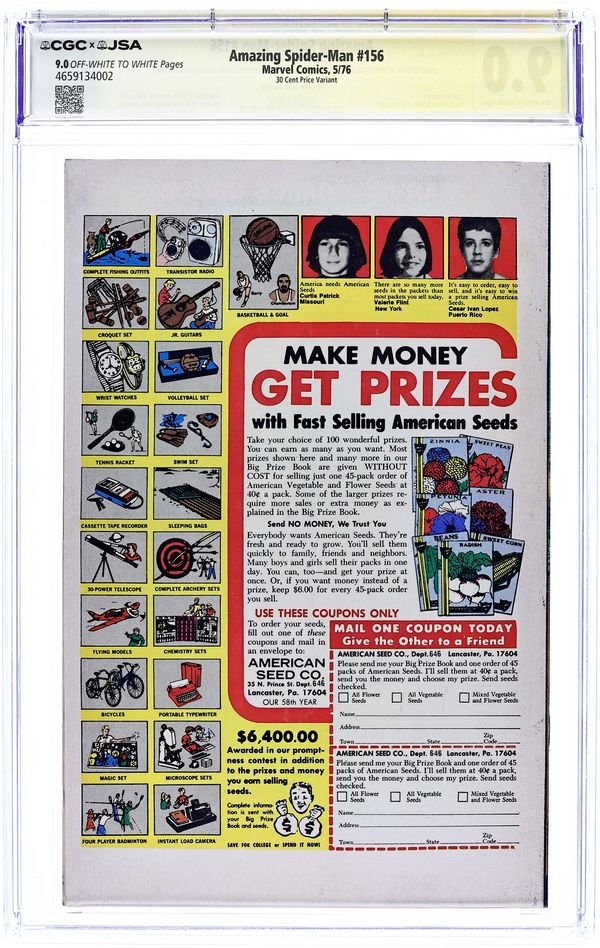 Direct Edition. "The Spider and the Burglar...A Sequel" Script by Marv Wolfman. Art by Keith Pollard (breakdowns) and Jim Mooney (finishes). Cover by John Romita. It's the bicentennial issue of the Amazing Spider-Man! And the web-slinger is going back, all the way back, to the days of Amazing Fantasy 15 to once again confront the criminal that murdered his Uncle Ben! But this time Peter Parker will have to stop the killer without his spider powers! Given a second chance, can the wall-crawler right the wrongs from the past and save his beloved Aunt May? Emotions run at an all-time high for your friendly neighborhood Spider-Man! Brief retelling of Spider-Man's origin. Cameo appearance by Anna Watson. Final appearance of the burglar. Flashback cameo by Ben Parker. (Note: Stan Lee scripts the final page of the story.)52 pgs. Cover price $0.75.