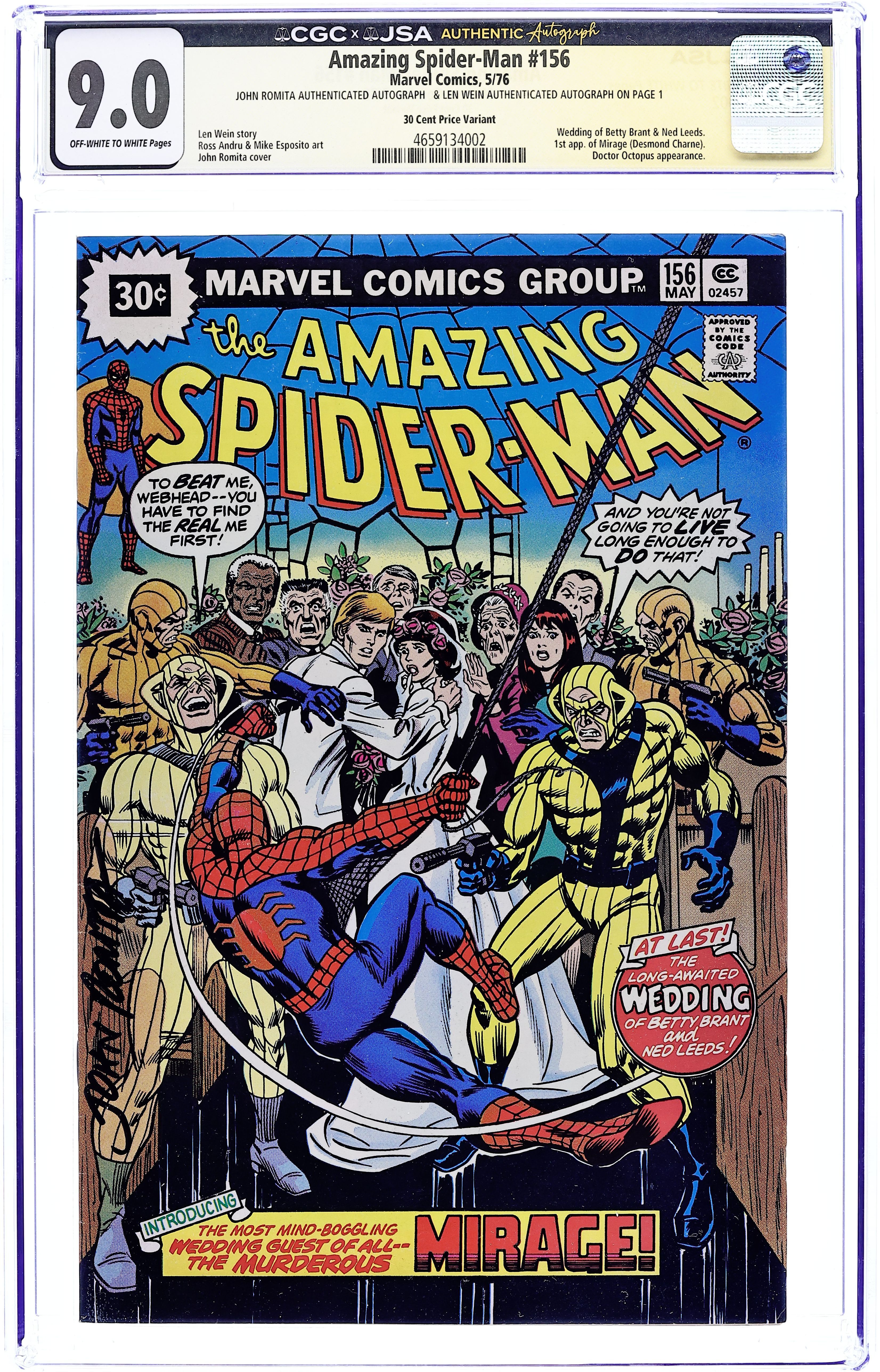 - John Romita Authenticated Autograph & Len Wein Authenticated Autograph on Page 1. 30 Cent Price Variant. COA Included.