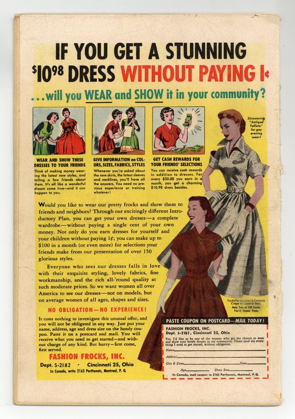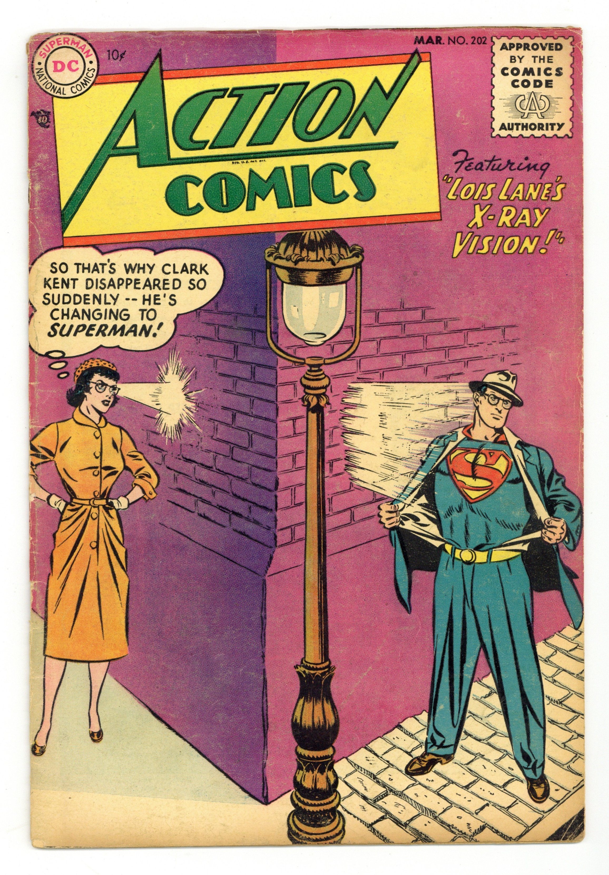 Cover pencils by Wayne Boring, inks by Stan Kaye. "Lois Lane's X-Ray Vision!", pencils by Wayne Boring, inks by Stan Kaye; Lois Lane acquires a pair of specially-treated glasses that give her X-ray vision. "The Space Dragnet!", script by Otto Binder, art by Jim Mooney; Tommy Tomorrow vs. Jon Crane. Shorty one-page story by Henry Boltinoff. Peg one-page story by Henry Boltinoff. "The Jungle Amusement Park!" starring Congo Bill, art by Ed Smalle. 36 Pages, Full Color. $.10 Cover price $0.10.