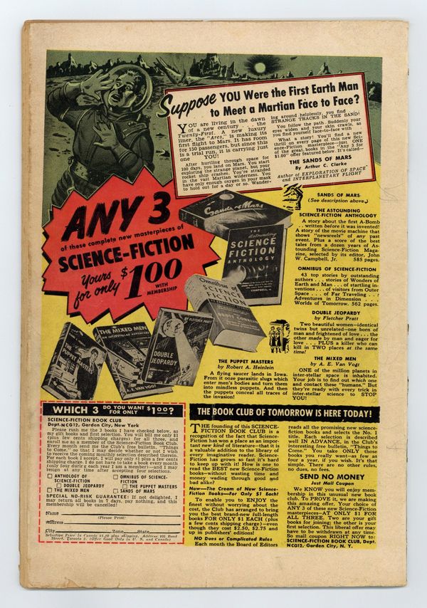 Cover art by Win Mortimer. Happy Hobby Time! public service announcement starring Superboy, script by Jack Schiff, art by Win Mortimer. The Menace of Planet Z starring Superman, script by Bill Finger, pencils by Wayne Boring, inks by Stan Kaye. The Meteor Mystery starring Tommy Tomorrow, pencils by Curt Swan, inks by John Fischetti. Congo Bill's Last Fight, script by Jack Miller, art by Ed Smalle. Outlaws For Sale starring Vigilante, art by Bob Brown. 44 Pages, Full Color. $.10 Cited in Parade of Pleasure. Cover price $0.10.