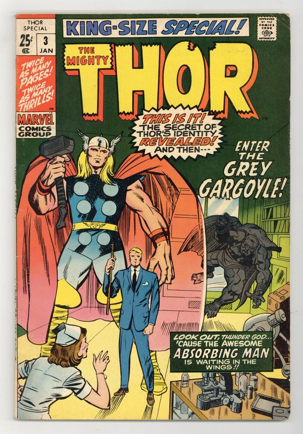 All Jack Kirby reprints: "A World Gone Mad" (from Journey Into Mystery 113); "Balder Must Die" (JIM 107); "Trapped by the Trolls" (JIM 108); "Banished From Asgard" (JIM 109); "The Defeat of Odin" (JIM 110); and "The Stronger I Am, the Sooner I Die" (JIM 114). Cover price $0.25.