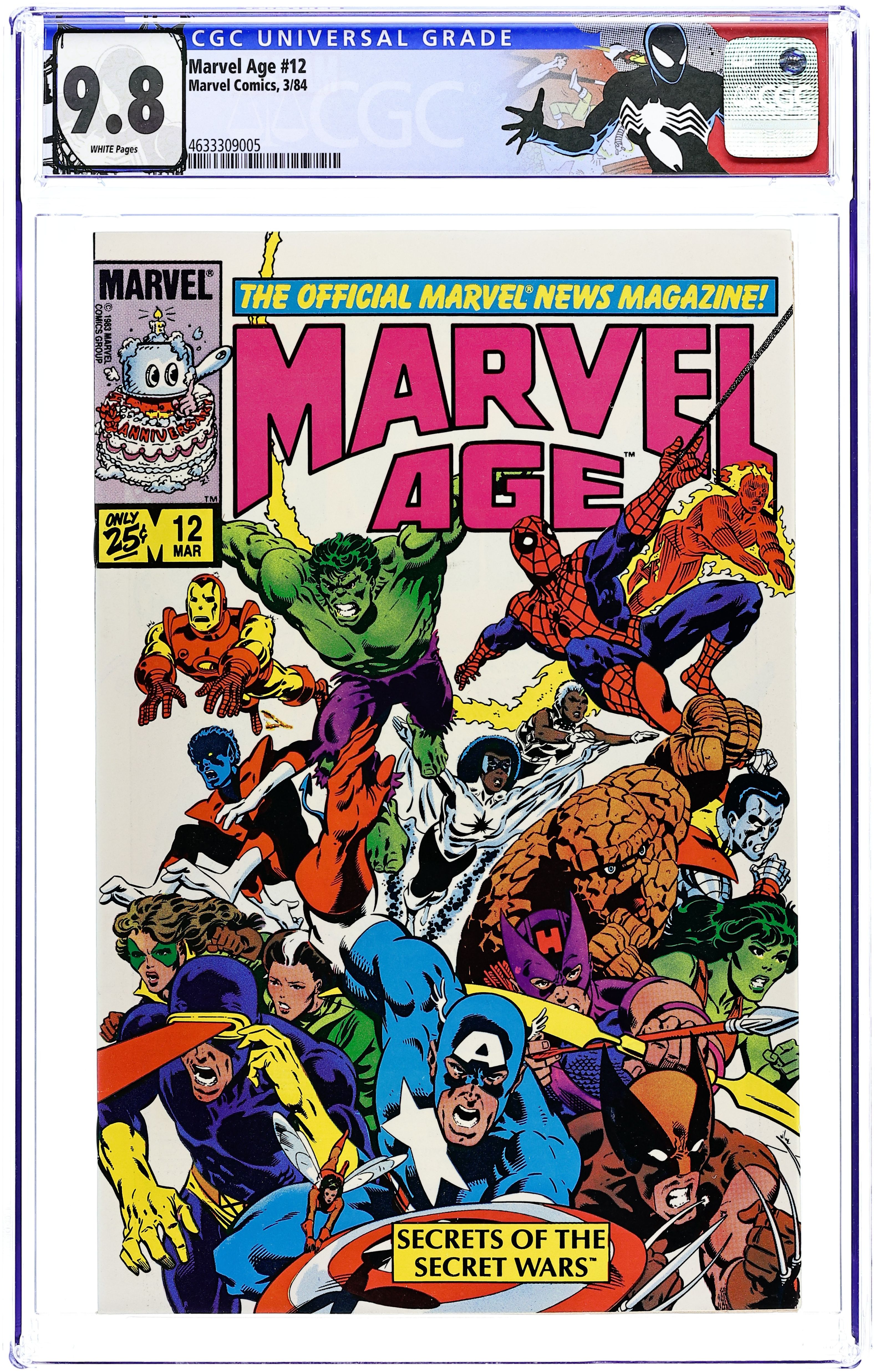 It's the big Marvel Super Heroes Secret Wars Issue! Get a preview on all the stuff from the historic series! PLUS! See Spider-man's black costume sketches in a comic that came out 2 MONTHS BEFORE Amazing Spider-Man # 252 (and Marvel Team-Up # 141 & Spectacular Spider-Man # 90. Secret Wars # 8 came out 7 months later). Article on Secret Wars, with designs of Spider-Man's new costume; Associate Editor Jo Duffy discusses Heartburst; writer Jim Salicrup discusses The A -Team; Secret Wars. Cover by Mike Zeck and John Beatty.