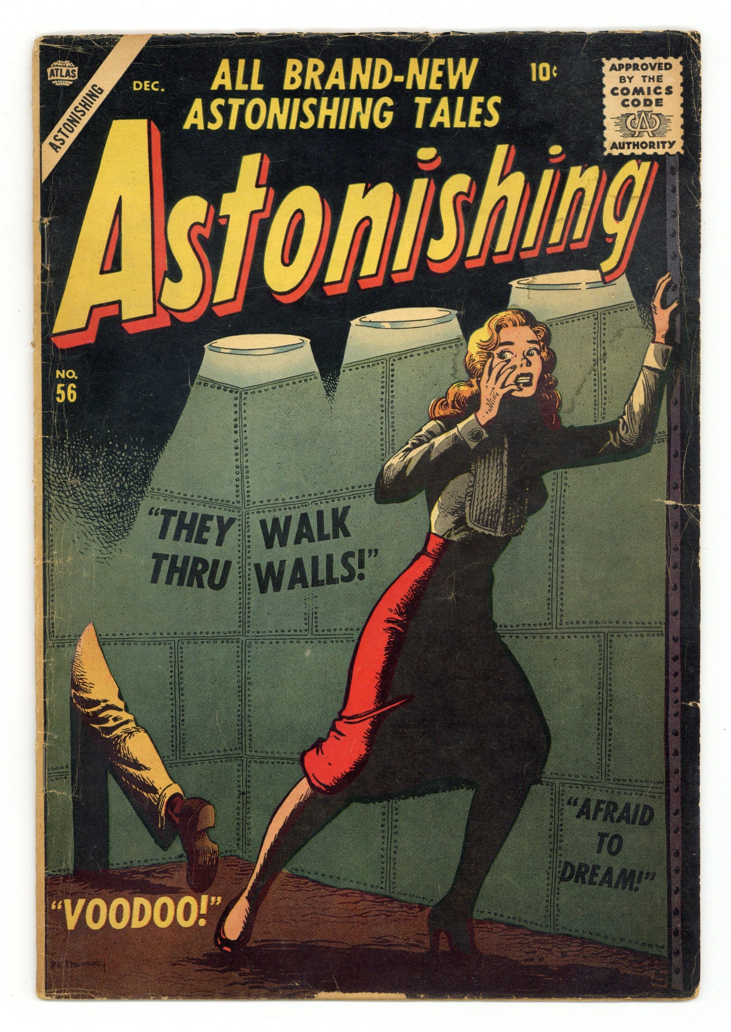 Cover art by Joe Maneely. They Walk Through Walls!, art by Paul Reinman; A man with aspirations of overthrowing the U.S. government is apprehended by men who walk through walls. They explain to him that they are a secret society dedicated to guarding the people from men like him. Afraid to Dream!, art by Jack Kirby. Something Waits For Me!, art by Bob Forgione. No Answer, art by John Forte; A man thinks he is a failure because the machine he created to contact other worlds gets no response and his boss fires him. Voodoo!, art by Gene Colan. 36 pgs. $0.10. Cover price $0.10.