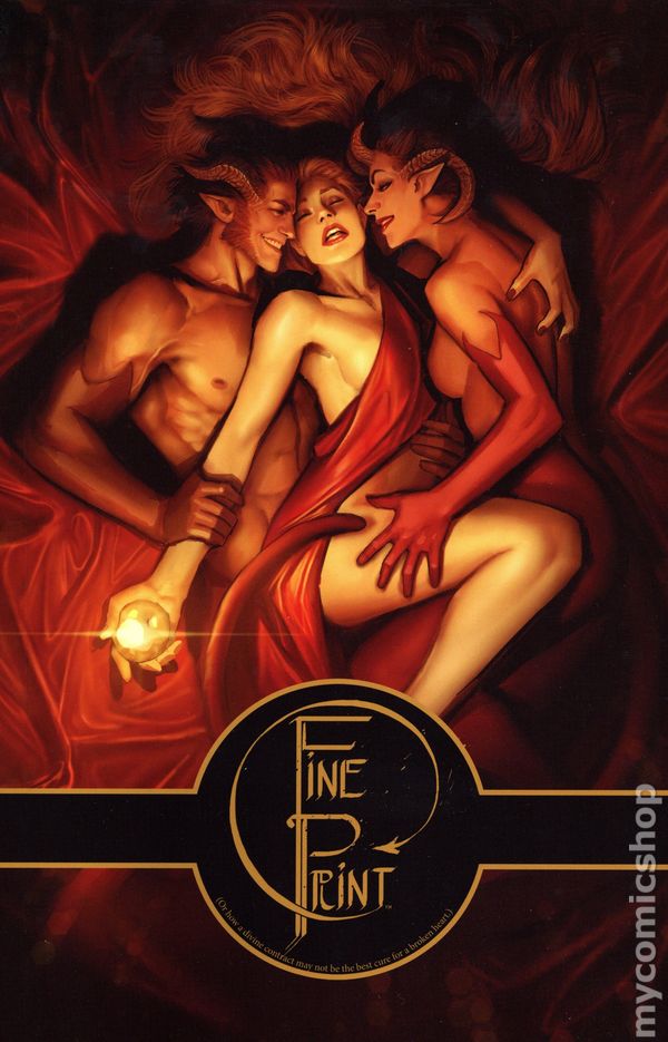 Volume 3 - 1st printing. Story and art by Stjepan Sejic. In Volume 3 of FINE PRINT (aka "Why sex with gods is NOT a good idea"), we dive in deep and discover that not all winged things are angels, not all horned ones bring damnation, and surprise-surprise, no amount of unbridled bliss can actually solve your problems. Like any painkiller, bliss only takes you so far. This is a lesson that unlucky-in-love Lauren Thomas is going to have to learn the hard way, despite the aid of some of the underworld's foremost incubi. Even in Lauren's unique position - having divine entities at your romantic beck and call - wrestling with the past is no one's idea of a good time. Not that things are any easier for the immortals in Lauren's orbit; whether you execute contracts or shoot heart-shaped arrows, interpersonal dynamics always end up complicating things. Softcover, 208 pages, full color. Mature Readers Cover price $19.99.