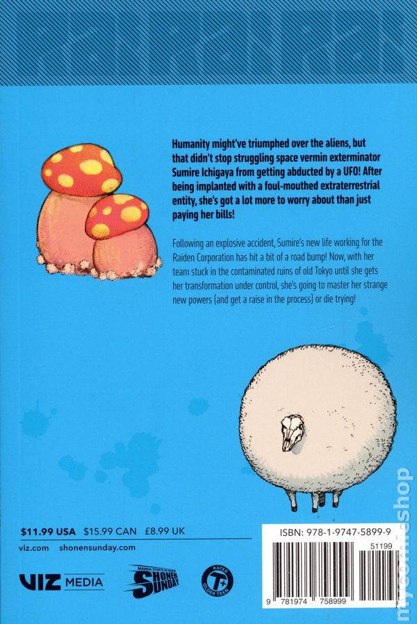 Volume 1 - 1st printing. Story and art by Yoshiaki. Translated by Julie Goniwich. Implanted with an extraterrestrial entity, a former space pest exterminator battles deadly alien threats-all to pay her bills! Sumire Ichigaya's got it tough. She's drowning in debt, surrounded by noisy neighbors, fighting for discount supermarket meals, and working a dead-end job exterminating space pests leftover from a failed alien invasion. It seems like things just can't get any worse-until she's abducted by aliens and wakes up with a monstrous new arm and a foul-mouthed voice in her head! All Sumire wanted to do was work her way out of debt-and maybe stop getting abducted by UFOs-but now that she's host to a massive alien arm with a mind of its own...well, she still got bills to pay, but now she's also got to worry about freaky extraterrestrial monsters and a company full of alien exterminators just waiting to autopsy her! Softcover, 5-in.x 7-in., 200 pages, B&W. Teen+ Cover price $11.99.