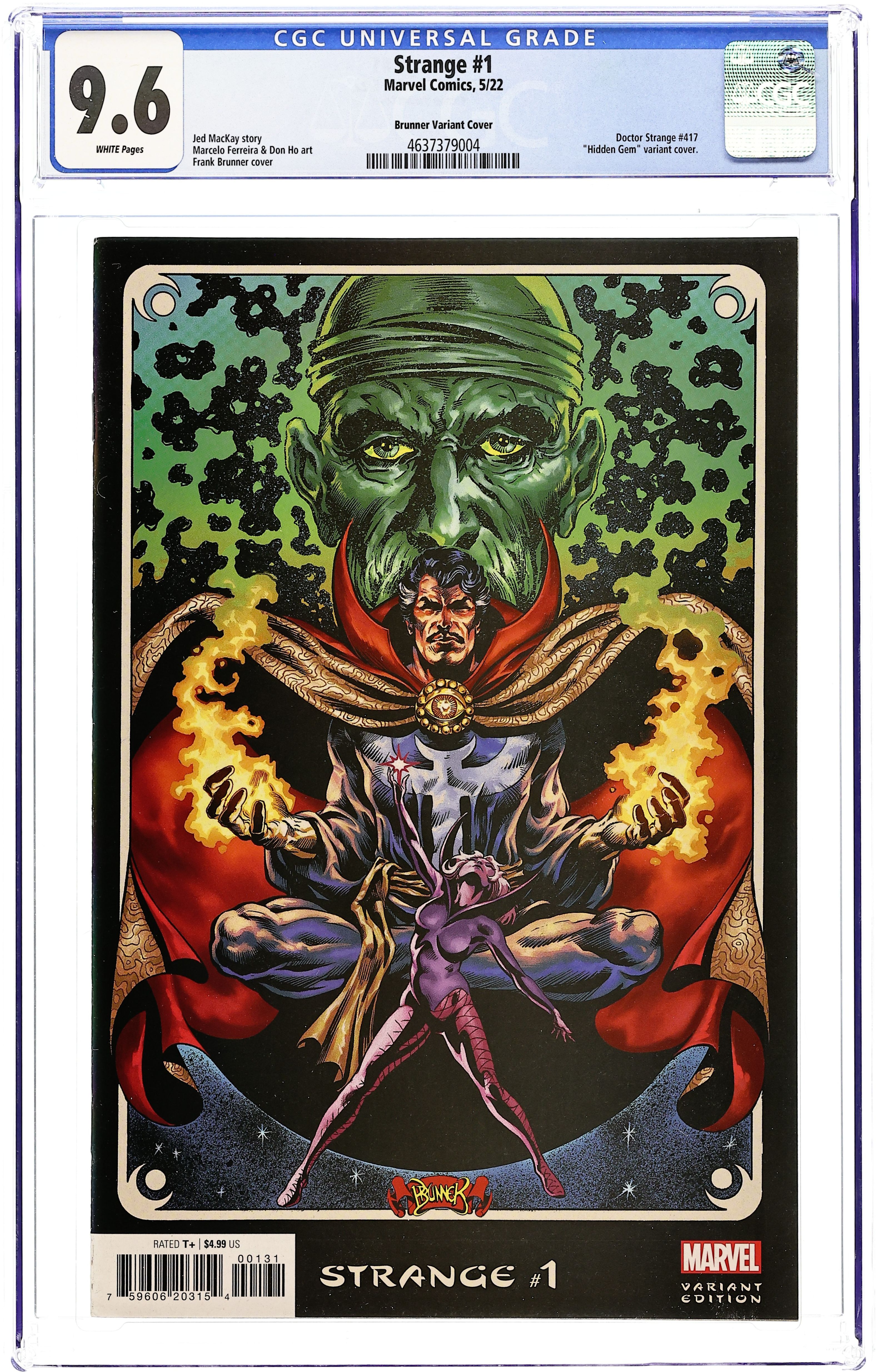 Limited 1 for 100 Retailer Incentive Variant Cover. Written by Jed MacKay. Art by Marcelo Ferreira. Cover by Frank Brunner. A NEW SORCERER SUPREME RISES! Doctor Strange is dead! And a new Sorcerer Supreme has taken the title, or should we say Sorceress? Haunted by her recently returned memories, Clea longs to bring Stephen Strange back from the dead! But when a mysterious group attacks the magical realm, Clea must rise to the duties of Sorcerer Supreme. For she is now the sole protector of Earth against magical threats. Don't miss the twists and turns as Jed MacKay continues the story from DEATH OF DOCTOR STRANGE with artist Marcelo Ferreira (THE AMAZING SPIDER-MAN)! 36 pages, full color. Rated T+ Cover price $4.99.