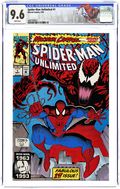 Direct Edition. "Carnage Rising!" Maximum Carnage Part 1 of 14. Script by Tom DeFalco. Pencils by Ron Lim. Inks by Jim Sanders III. Cover by Ron Lim and Jim Sanders III. Following the tragic events of Spectacular Spider-Man 200, the friends and family of Harry Osborn gather for Harry's funeral. Peter and Mary Jane reflect upon the tragic passing of another friend and wonder where their lives will go from here. Meanwhile at the Ravencroft maximum security institution, one of the doctors gets the bright idea to take a blood sample from Cletus Kasady. And in that critical instant…the murderous Carnage is reborn! Oh my, Katie bar the door! Because the killing is about to begin! True to form Carnage wipes out the entire hospital staff, but then surprisingly makes a new friend! Who is this murderess so ready and willing to help Carnage? The web-slinger will find out soon when he battles her and that pesky eight-legged doppelganger several hours later! As for Carnage, he's going to pay a visit to J. Jonah Jameson before he pays back his two hated enemies…Venom and the Amazing Spider-Man! Story continues in Web of Spider-Man 101. First appearance of Shriek. Cameo appearances by the Black Cat and the Molten Man. Second Story: "Playback" Script by Mike Barr. Pencils and Inks by Jerry Bingham. While fighting the Scorpion at an abandoned construction site, the wall-crawler has strange flashbacks to his adolescent days (before Uncle Ben was killed). Third Story: "Long Way Down!" Script by Terry Kavanagh. Pencils by Mark Bagley. Inks by Tom Palmer. Cardiac stalks city executives who embezzled funds (designated for building safety improvements) into their own pockets. Cardiac is poised to deliver his own brand of justice until Code: Blue arrives on the scene! (Notes: Carnage previously appeared in Amazing Spider-Man 363. This issue is printed on glossy paper. The Maximum Carnage storyline was reprinted in 1994 in the trade paperback: Spider-Man Maximum Carnage.) 64 pages Cover price $3.95.