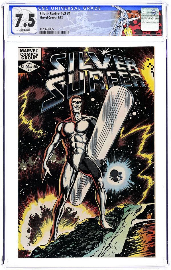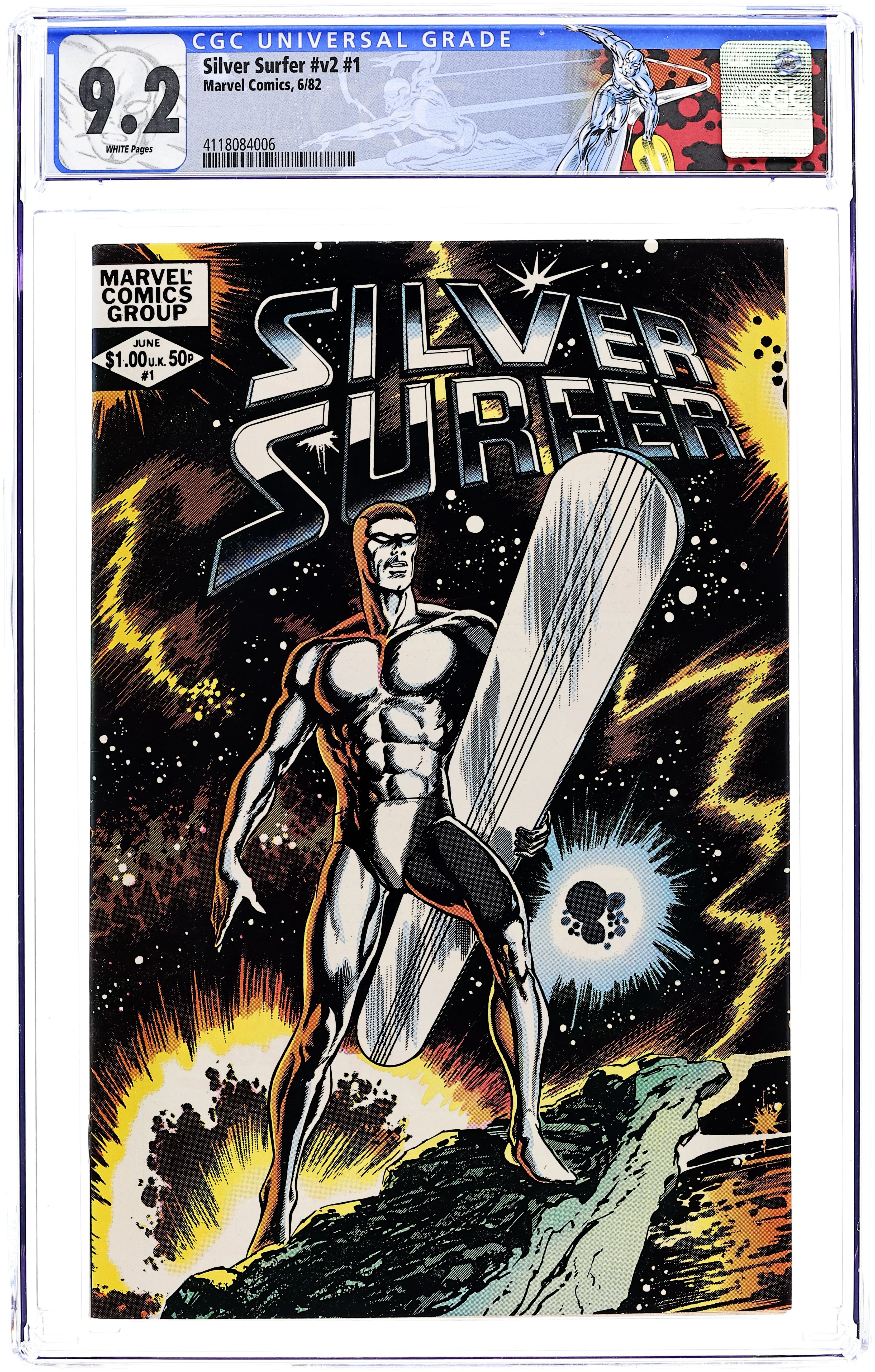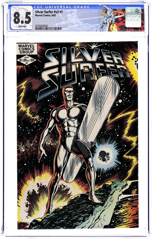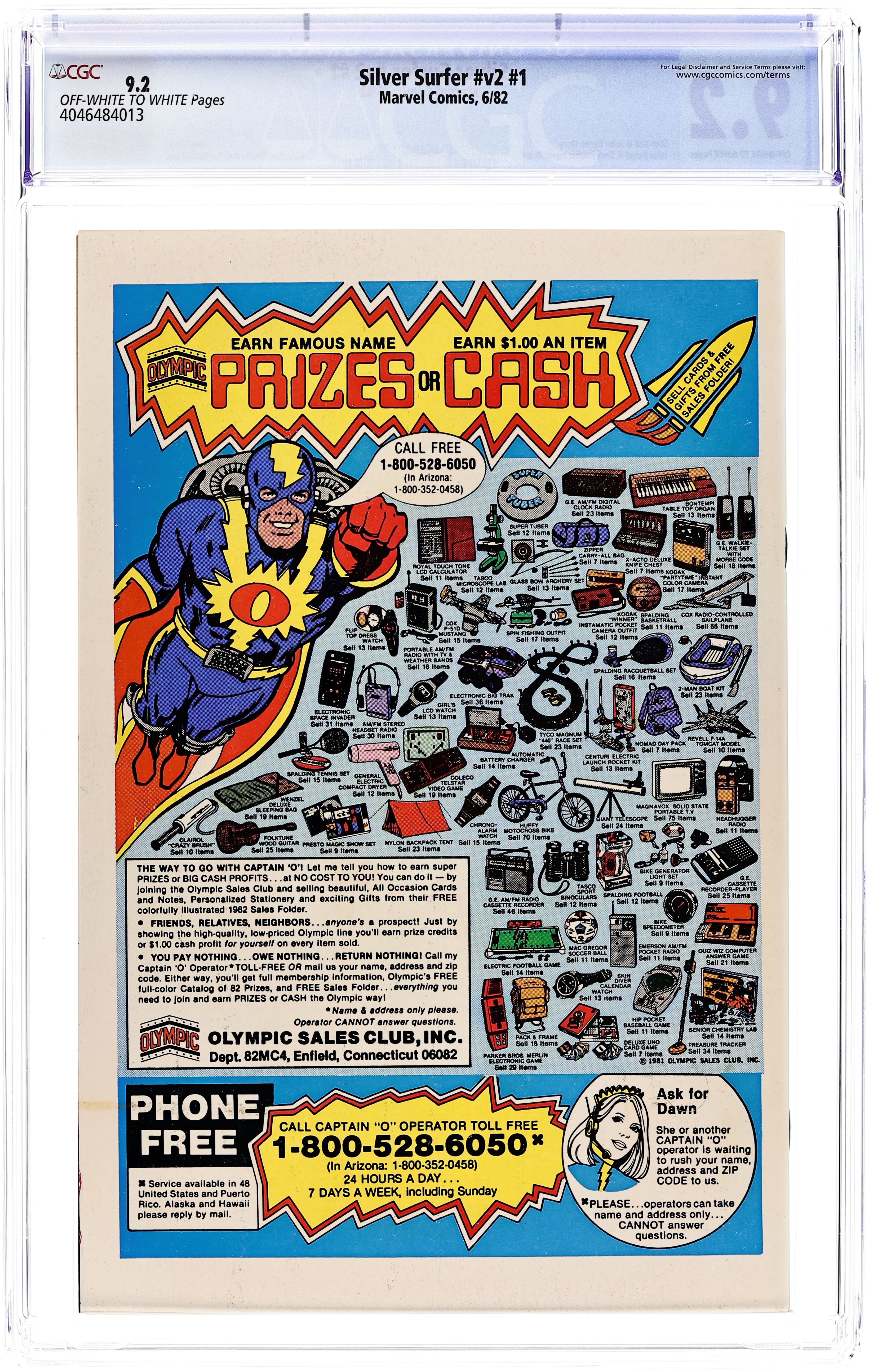 Cover by John Byrne and Tom Palmer. Escape--To Terror!, script by John Byrne and Stan Lee, art by John Byrne and Tom Palmer; The FF help Surfer break the barrier of Galactus, ending his exile on earth & granting him the freedom to roam the spaceways once again; The Surfer returns to Zenn-La to reunite with his love Shalla-Bal but finds that after he betrayed Galactus on earth, the world eater devastated his home world in retaliation; Informed by the survivors that Shalla-Bal was captured by the demon Mephisto, the Surfer flies back to earth & battles the monster in his own realm for her freedom; Beaten but still victorious, Mephisto returns Shalla-Bal to her home world while the Surfer is again trapped on earth. 52 pgs., full color. $1.00. Cover price $1.00.