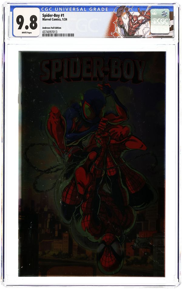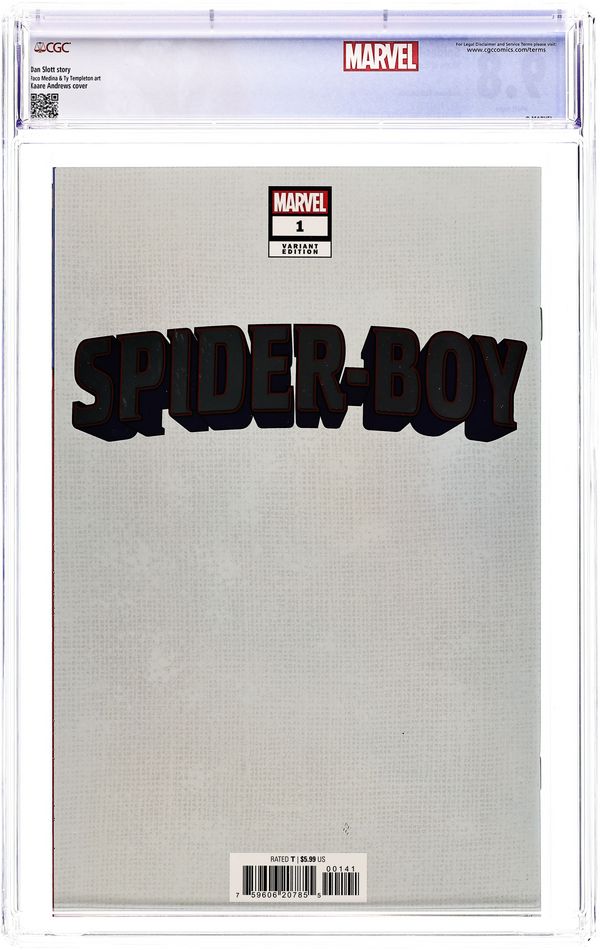 Written by Dan Slott. Art by Paco Medina. Cover by Kaare Andrews. SECRETS OF SPIDER-BOY REVEALED! Spinning out of the pages of DAN SLOTT and MARK BAGLEY's monumental SPIDER-MAN run - here comes the spectacular SPIDER-BOY! After the events of THE END OF THE SPIDER-VERSE, Spider-Boy's secret history as Spider-Man's sidekick was nearly forgotten forever. But now those mysteries will be revealed while they embark on exciting new adventures…TOGETHER! 40 pages, full color. Rated T Cover price $9.99.