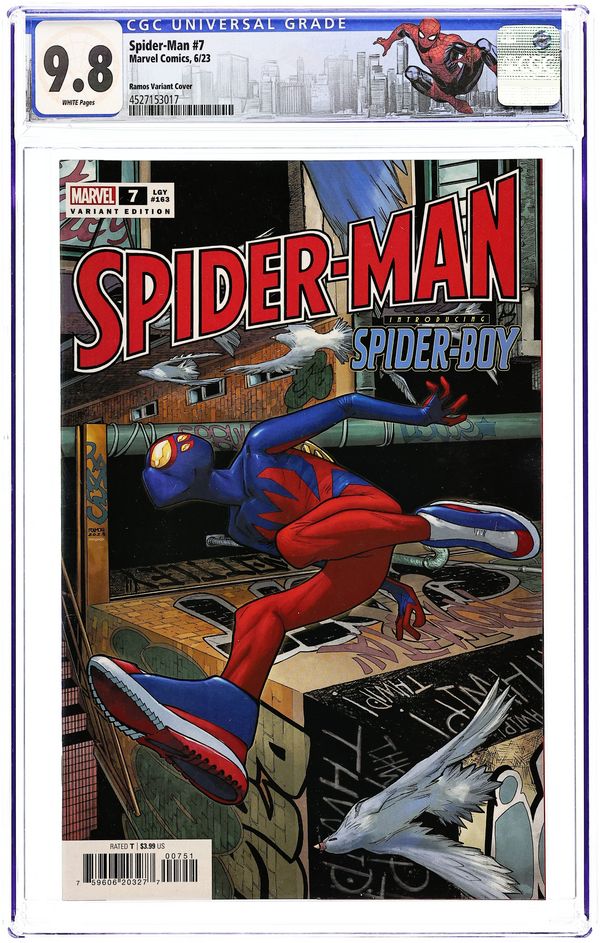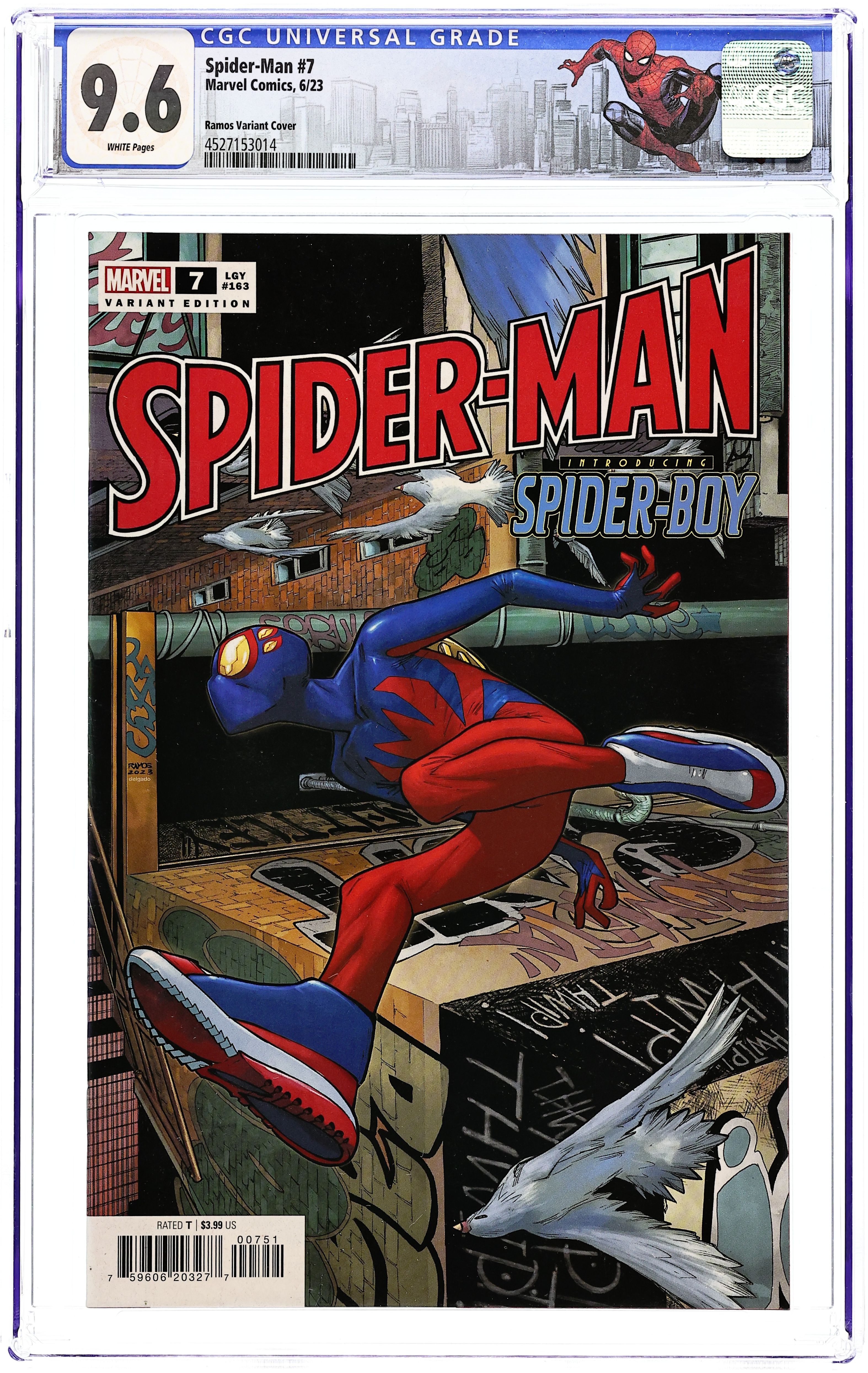 Written by Dan Slott. Art by Mark Bagley. Cover by Humberto Ramos. THE END OF THE SPIDER-VERSE IS HERE! Friends became enemies, enemies became friends and now all of the Spider-Verse ENDS! Jessica Drew? Gone. Peter Parker? Gone. And they aren?t the only ones erased by the sacred Sting-Knife. How can Silk and the rest of the Spiders win this Spider-War?! 28 pages, full color. Rated T Cover price $3.99.