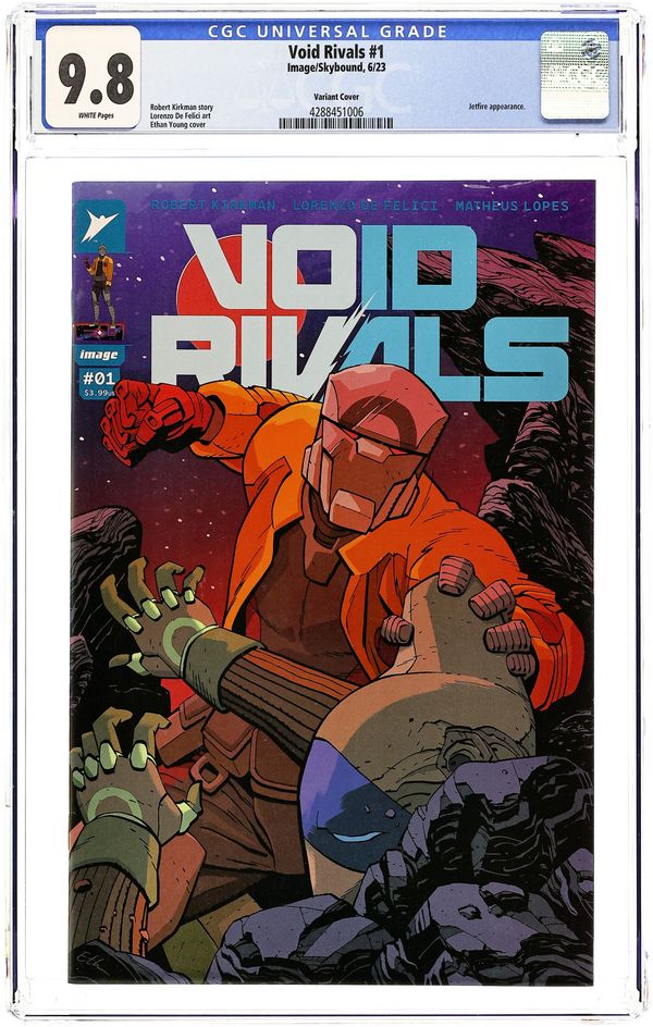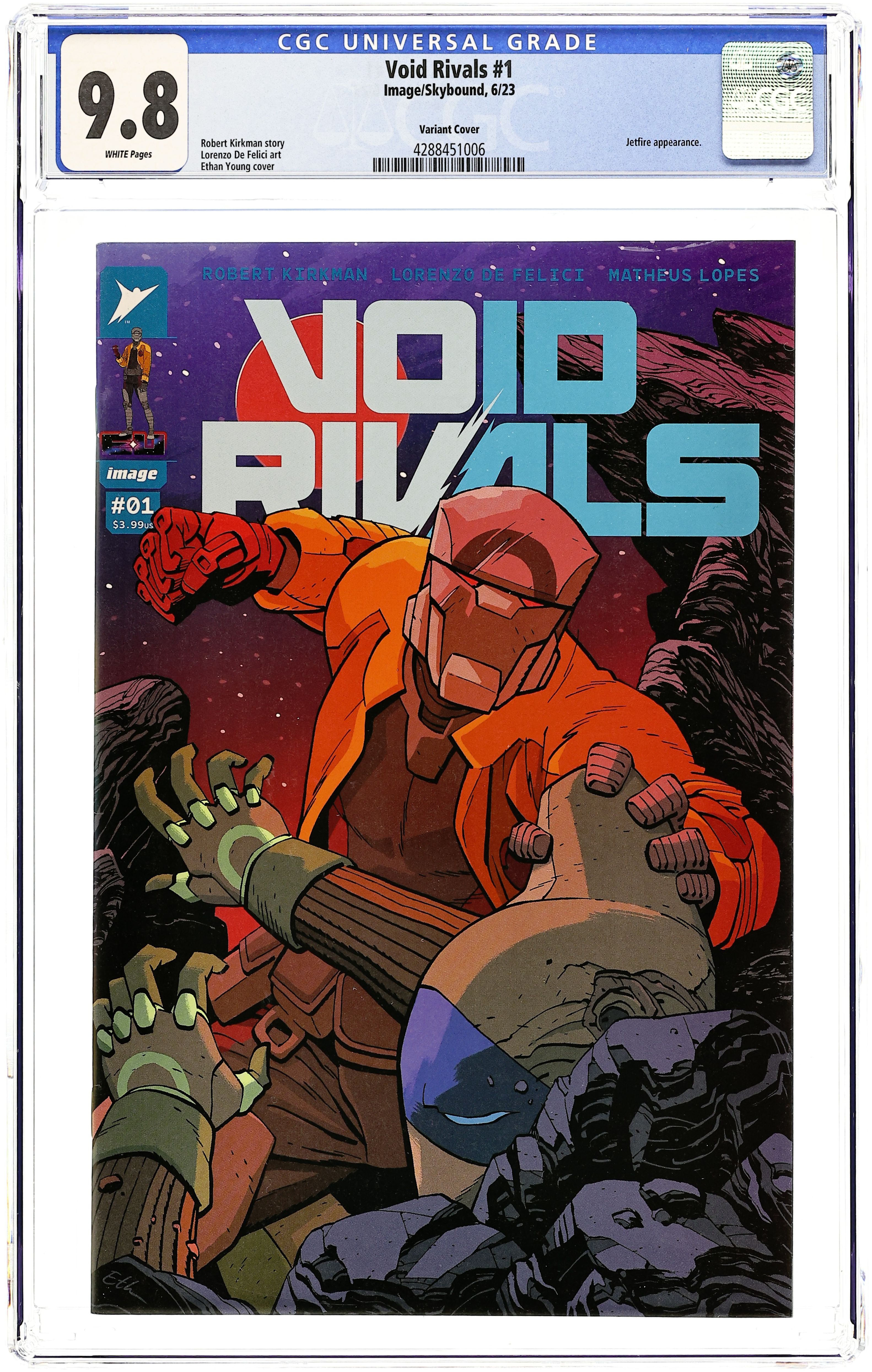 Written by Robert Kirkman. Art by Lorenzo De Felici, Matheus Lopes. Cover by Ethan Young. SERIES PREMIERE The blockbuster OBLIVION SONG team of ROBERT KIRKMAN & LORENZO DE FELICI debut the biggest new comic book series of 2023 with the launch of AN ALL-NEW SHARED UNIVERSE and a SURPRISE you won't see coming! War rages around the Sacred Ring, where the last remnants of two worlds have collapsed around a black hole in a never-ending war. However, when pilot Darak and his rival Solila both crash on a desolate planet, these two enemies must find a way to escape together. But are they alone on this strange planet? And what dark forces await that threaten the entire universe? 28 pages, full color. Rated T Cover price $3.99.