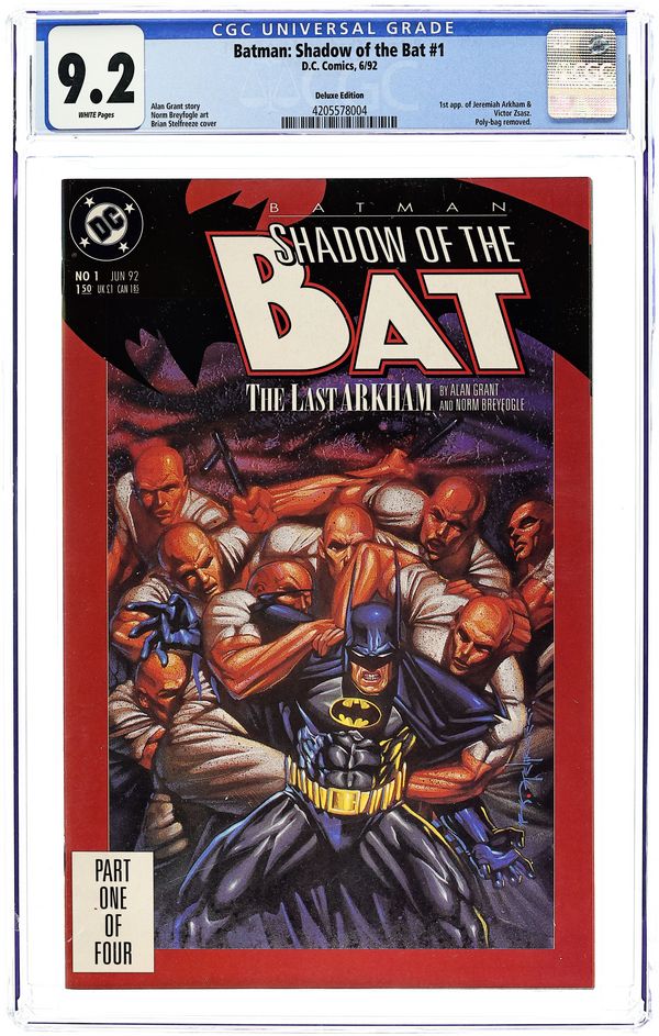 Direct Unbagged Edition. Part 1 of the 4-part "The Last Arkham." Arkham Asylum has a new warden, Jeremiah Arkham, the nephew of the asylum's founder, Amadeus. And Jeremiah's big plans for Gotham's madhouse include incarcerating Batman. Written by Alan Grant, with art by Norm Breyfogle. Painted cover by Brian Stelfreeze. New Format. Cover price $1.50.