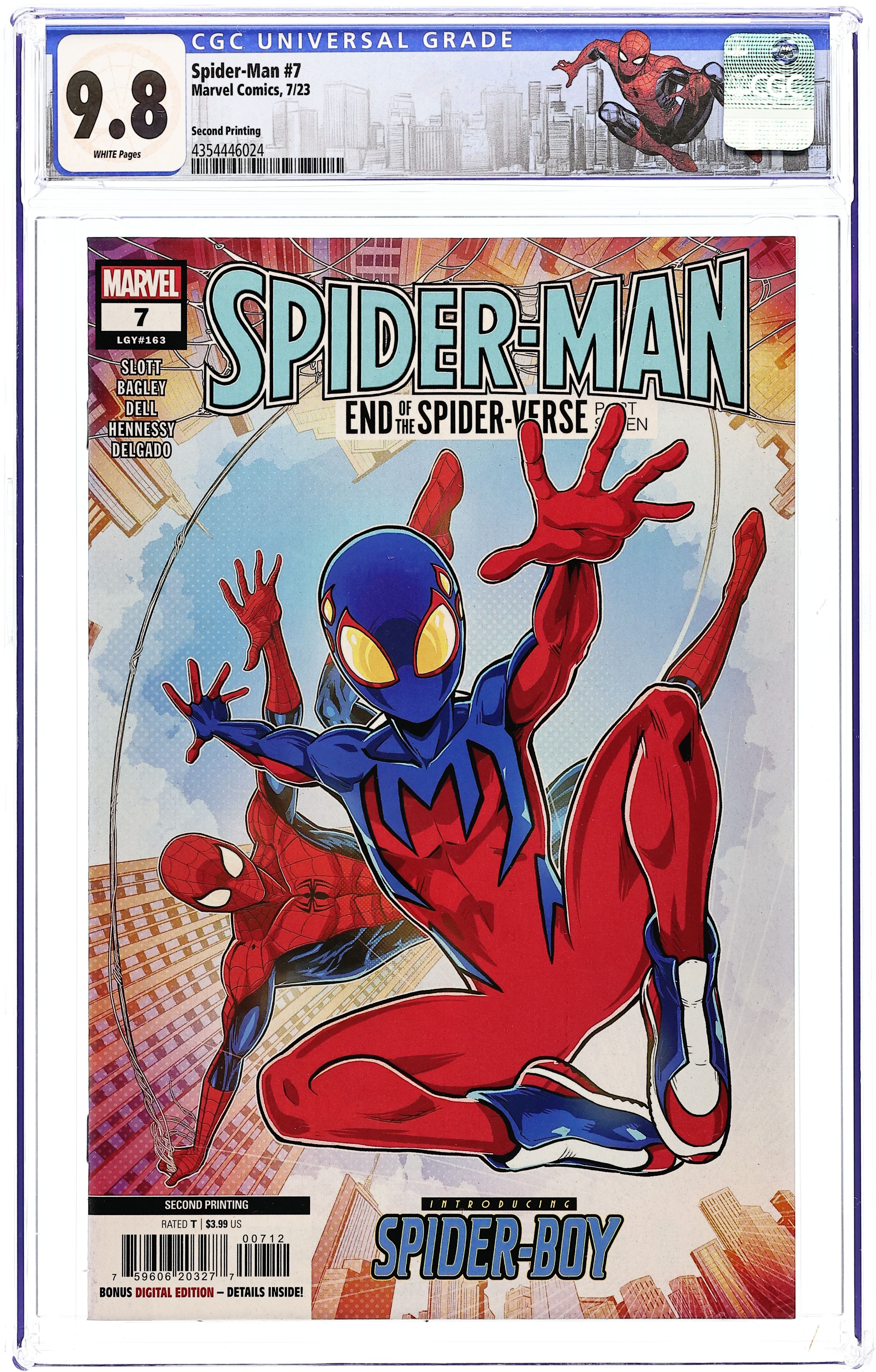 2nd Printing. Written by Dan Slott. Art by Mark Bagley. Cover by Luciano Vecchio. THE END OF THE SPIDER-VERSE IS HERE!Friends became enemies, enemies became friends and now all of the Spider-Verse ENDS!Jessica Drew? Gone. Peter Parker? Gone. And they aren?t the only ones erased by the sacred Sting-Knife.How can Silk and the rest of the Spiders win this Spider-War?! 28 pages, full color. Rated T Cover price $3.99.