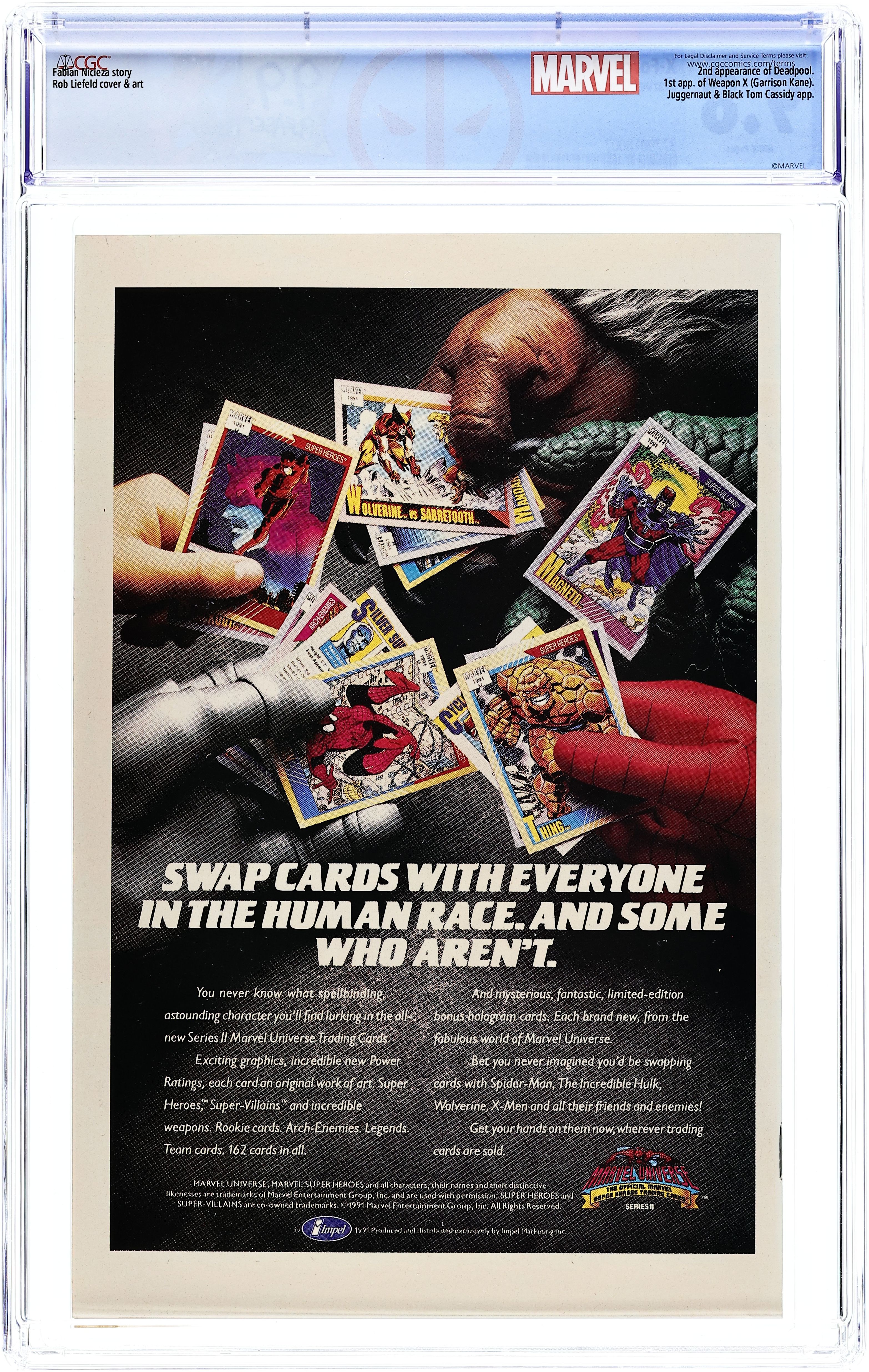 Direct Edition. Cover art by Rob Liefeld. The Blood Hunters, script by Rob Liefeld (plot) and Fabian Nicieza, art by Rob Liefeld; Kane fights Deadpool; During a training exercise, Feral guts Sam; Juggernaut is revived; appearance by Weapon X [2nd Deadpool; 1st Garrison Kane]. 36 pgs. $1.00. Cover price $1.00.