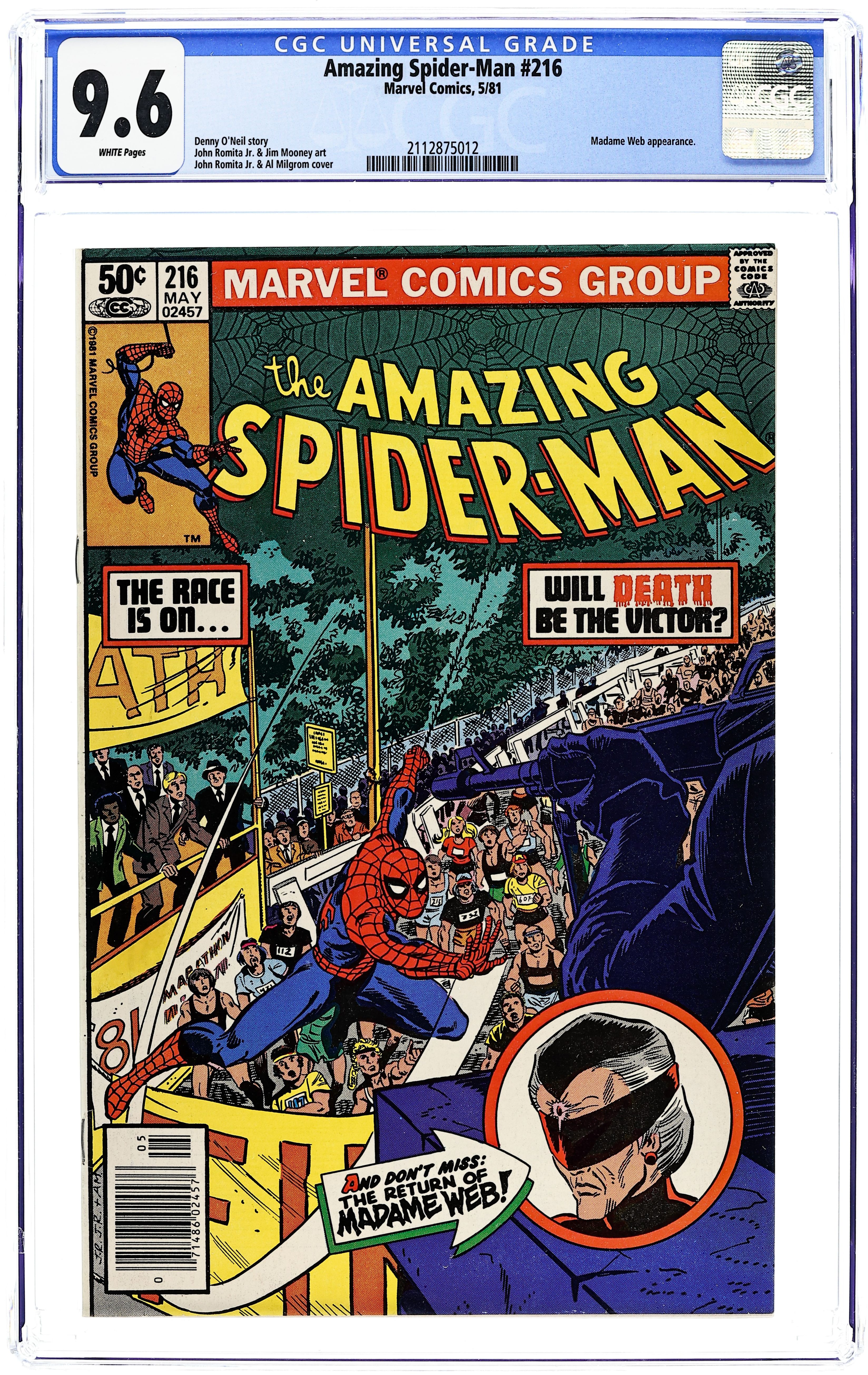 Newsstand Edition. "Marathon" Script by Denny O'Neil. Art by John Romita Jr. (breakdowns) and Jim Mooney (finishes). Cover by John Romita Jr. and Al Milgrom. It's time for the annual New York City marathon! And this year's race has a special guardian angel...the Amazing Spider-Man! After the web-slinger hears about a possible assassination attempt during the event, he decides to follow the race for the full 26 miles! But there are over 15,000 runners participating! How will Spidey know who is the intended target? Enter Madame Web! With help from his clairvoyant friend, the wall-crawler zeroes in on the sniper; while the runners zero in on the finish line! Cameo appearances by Aunt May, Nathan Lubensky, and J. Jonah Jameson. (Notes: Madame Web appears next in Amazing Spider-Man 229. This issue includes a full-page ad for the first issue of the Dazzler series.) 36 pages. Cover price $0.50.