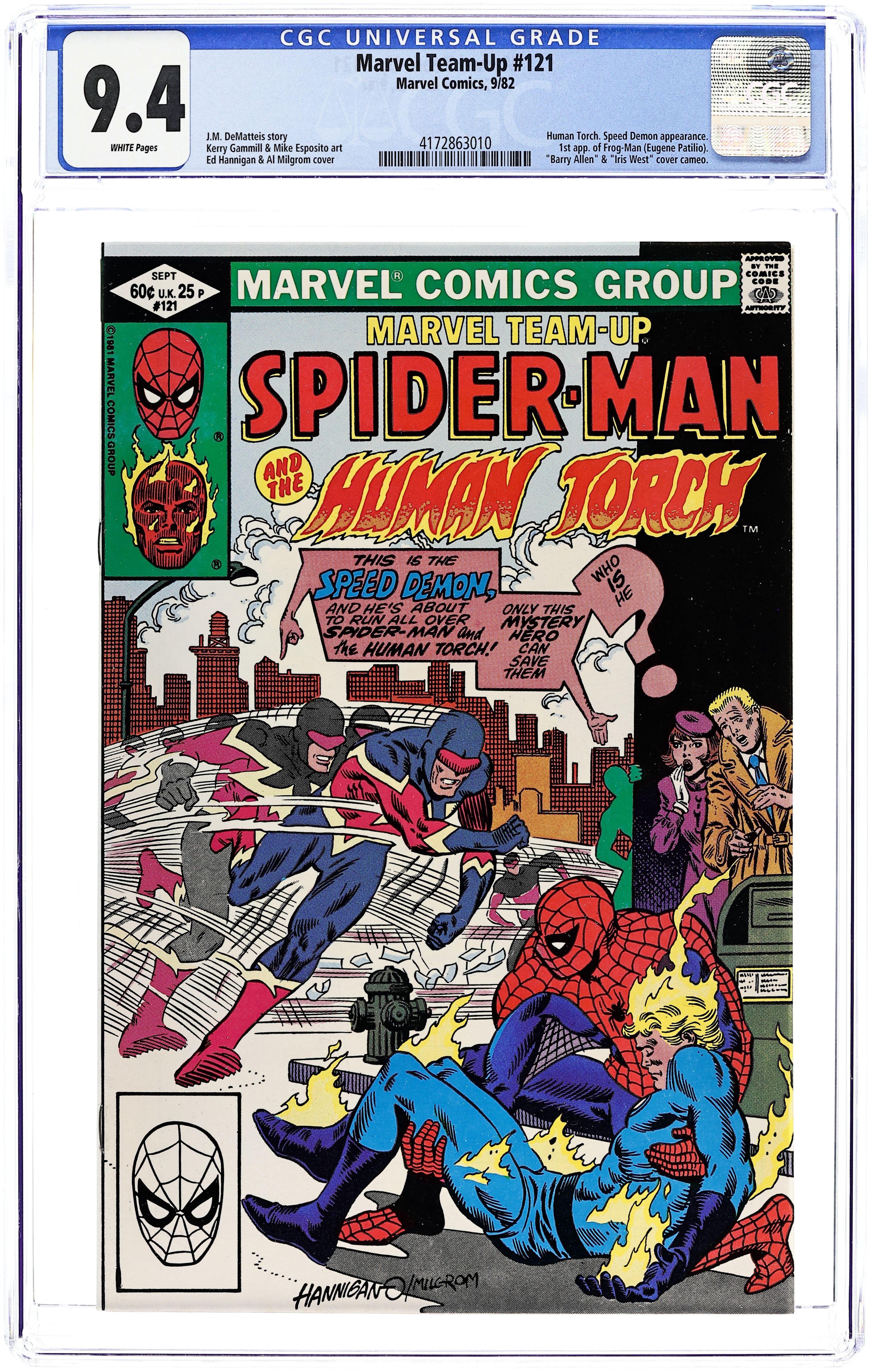 Direct Edition. "Look Before You Leap!" Guest-starring Spider-Man and the Human Torch. Script by J.M. DeMatteis. Pencils by Kerry Gammill. Inks by Mike Esposito. Cover by Ed Hannigan and Al Milgrom. The Speed Demon is on a crime spree...and running circles around the web-slinger and the Human Torch as they try to catch him! Meanwhile, a young man named Eugene Patilio believes he can help his father by becoming a super hero! So the Frog-Man is born! Sure enough the two plotlines converge, and the Frog-Man takes on his first opponent...the Speed Demon! Fortunately, Spidey and the torch are there to lend a hand! First appearance of Frog-Man. Flashback cameo by Daredevil. (Notes: The Speed Demon previously appeared in Amazing Spider-Man 222. The back cover features a Mega Force ad by William Stout.) 36 pages. Cover price $0.60.
