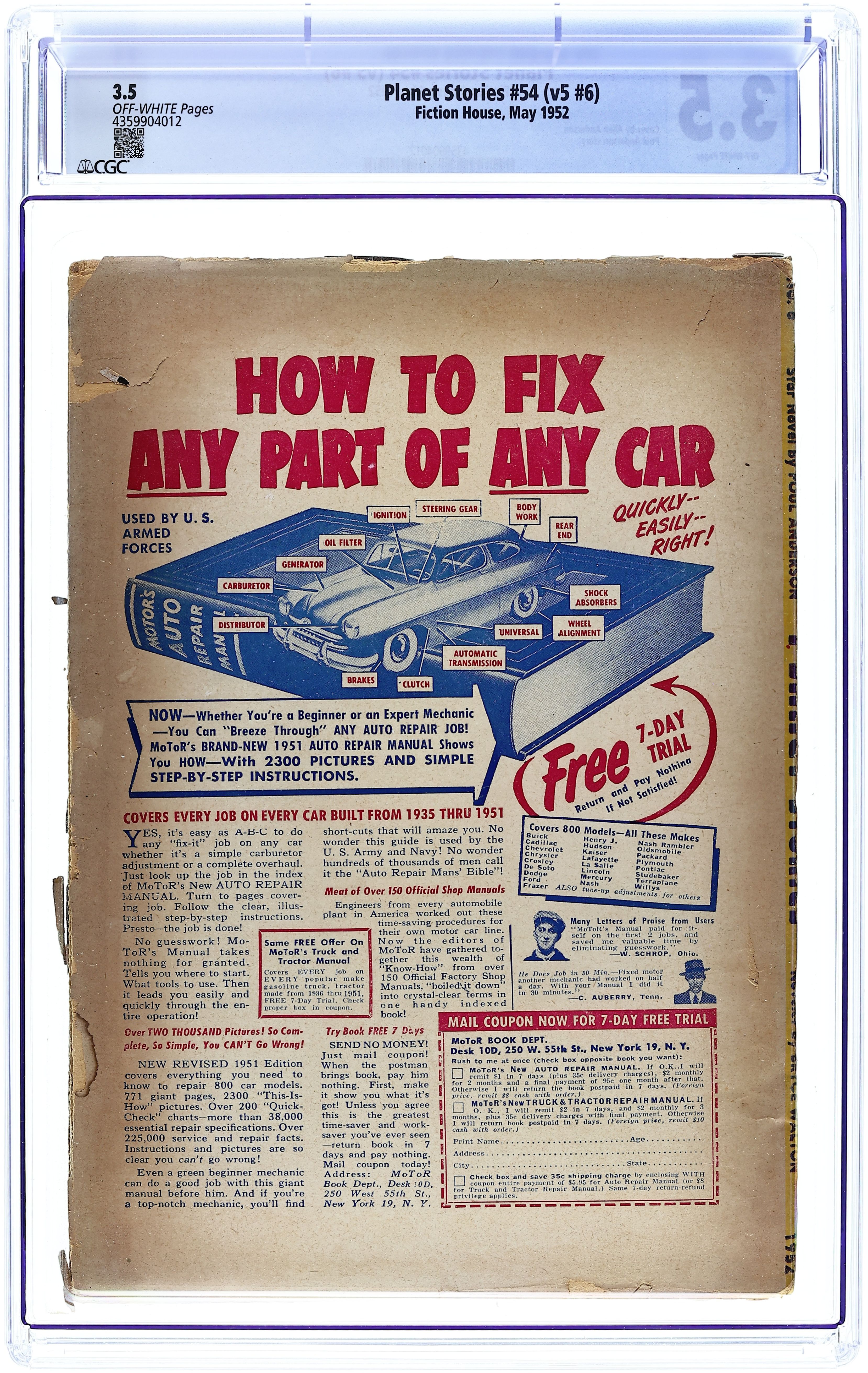 Published May 1952 by Fiction House.Planet Stories (1939-1955 Fiction House) Pulp Vol. 5 #6 CGC 3.5