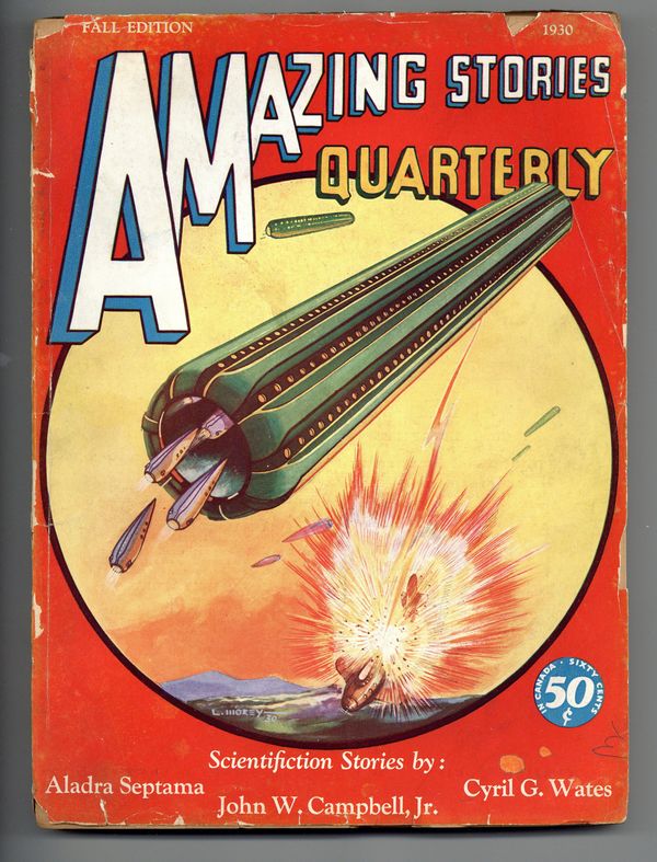 Vol. 3, No. 4 - Fall 1930. Stories by John W. Campbell Jr.; Aladra Septama, Cyril G. Wates, David H. Keller M.D., Kathleen Luckwick, and R.V. Happel. Illustrations by Leo Morey and Wesso. Morey cover. 8.5-in. x 11-in.; black and white with color cover; 144 newsprint pages. Cover price $0.50.
