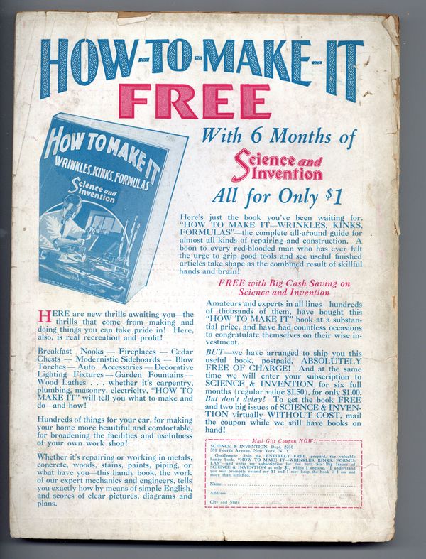 Published Oct 1930 by Experimenter Publications.$26.00- Front and Back Cover Detached. Water damage: Slight. Staple rust: Slight.