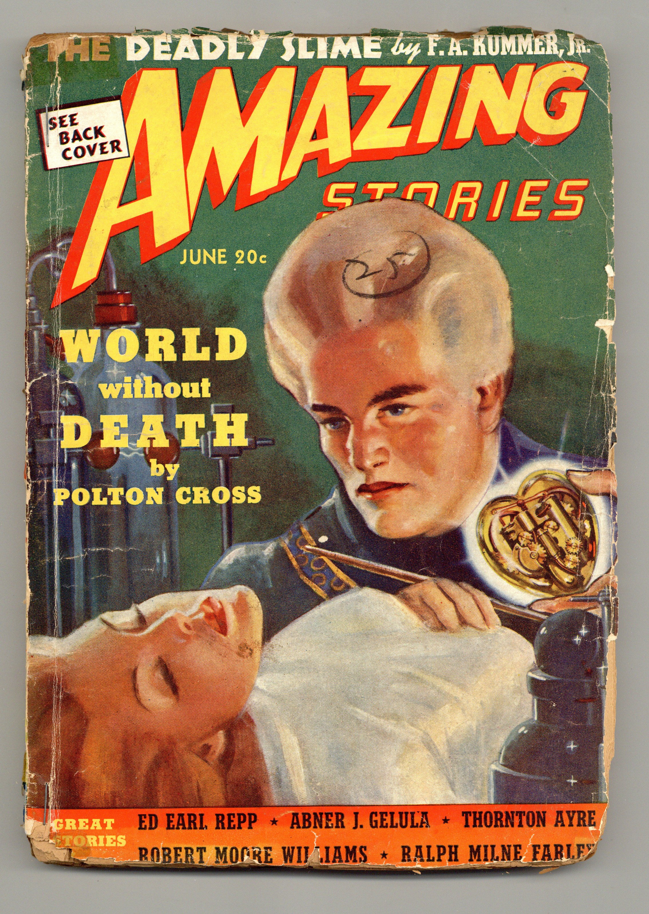 Volume 13, Issue 6 - June, 1939. Cover by William Juhre. Stories by F.A. Krummer Jr., Polton Cross, Ed Earl Repp, Abner J. Gelula, Thornton Ayre, Robert Moore Williams, and Ralph Milne Farley. 7" x 10"; black and white with color cover; 146 newsprint pages. Cover price $0.20.