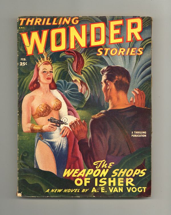 Volume 33, Issue 3 - February, 1949. Cover by Earle K. Bergey. Stories by A.E. Van Vogt, James Blish and Damon Knight, Benj. Miller, William Fitzgerald, Ray Bradbury, Sam Merwin Jr., Margaret St. Clair, and Theodore Sturgeon. Nine Virgil Finlay illustrations. 7-in. x 10-in.; black and white; 160 newsprint pages. Cover price $0.25.