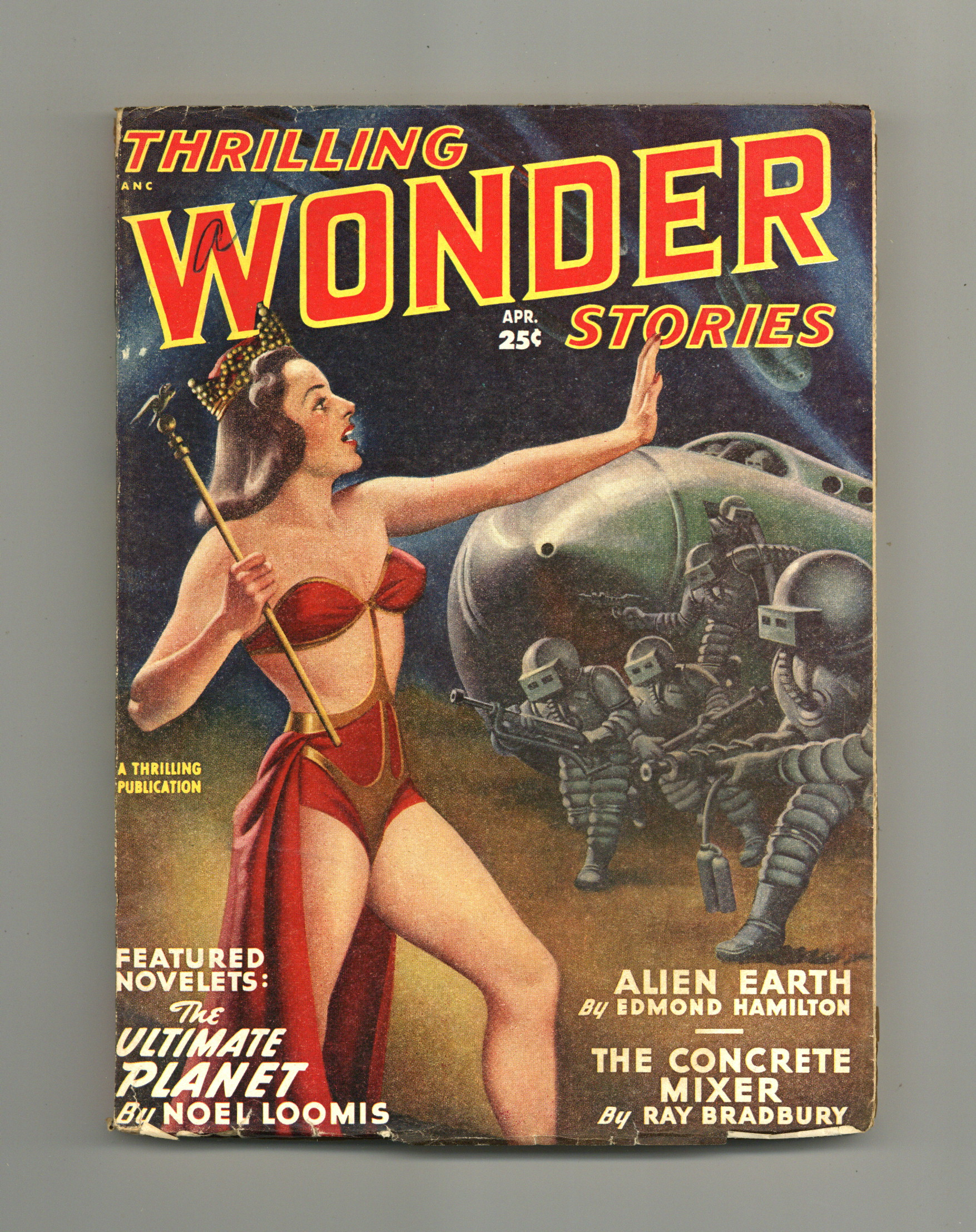 April 1949. Stories by Noel Loomis, Edmond Hamilton, Ray Bradbury, Benj. Miller, Raymond Z. Gallun, Leigh Brackett, Rog Phillips, Margaret St. Clair, Murray Leinster, Fredric Brown, and James Blish. Five Virgil Finlay illustrations. 7-in. x 10-in.; black and white; 166 newsprint pages. Cover price $0.25.