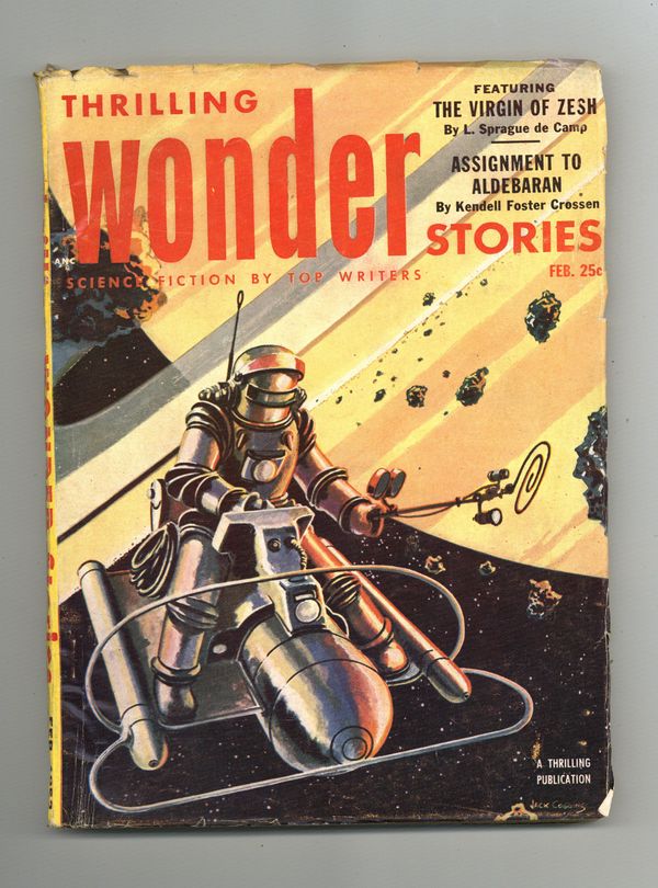 Volume 41, Issue 3 - Februaty, 1953. Cover by Jack Coggins. Stories by L. Sprague de Camp, Kendell Foster Crossen, Robert Donald Locke, Margaret St. Clair, and Julian May. Alex Schomburg illustrations. 7-in. x 10-in.; black and white; 148 newsprint pages. Cover price $0.25.