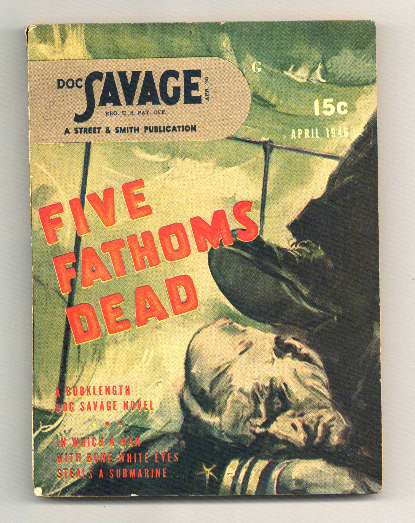 April 1946. "Five Fathoms Dead" by "Kenneth Robeson"; "World Lanes to Montizo" by Stuart Friedman; "Who Rides a Tiger" by Thorne Lee; "All That Glitters" by Everett M. Webber; and "The Jonah and the Jap" by Frank Herbert (of "Dune" fame; precedes his first Science Fiction story by 6 years). Digest size, 5-5/8" x 7-3/4"; black and white; 128 pages. Cover price $0.15.