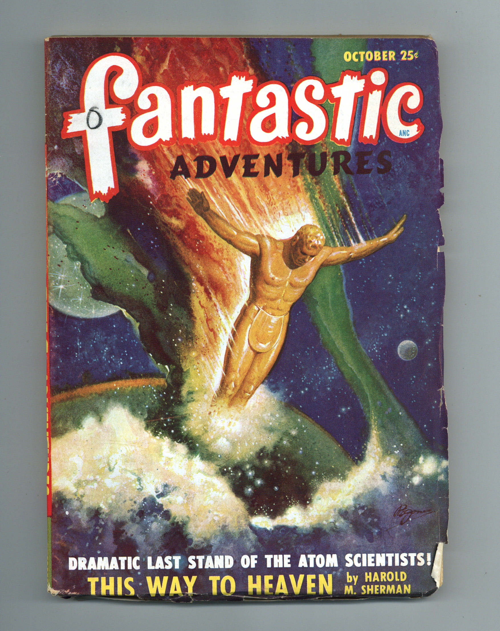 Volume 10, Issue 10 - October, 1948. Cover by Robert Gibson Jones. Stories include "This Way to Heaven" by Harold M. Sherman, "Ernest's Evil Entity" by Arthur T. Harris, "The Well-Wisher" by Bernie Kamins, and "The Pruning Man" by Robert Moore Williams. Illustrations by Robert Gibson Jones, Henry Sharp, and Julian Krupa. 7-in. x 9.75-in.; black and white; 154 newsprint pages. Cover price $0.25.