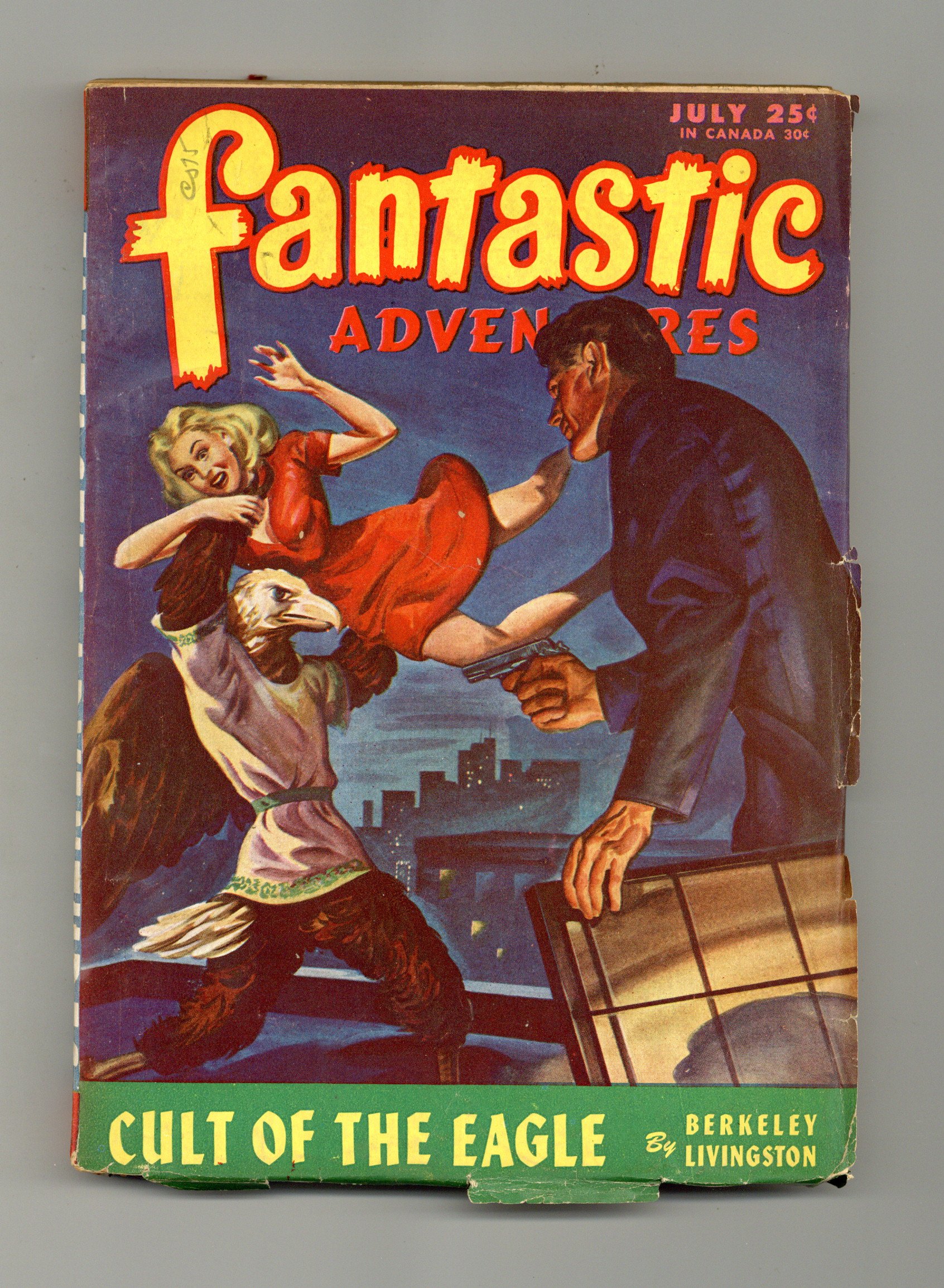 Volume 8, Issue 3 - July, 1946. Cover by Arnold Kohn. Stories by Robert Moore Williams, Robert Bloch "Tree's A Crowd", Thomas P. Kelley, William Lawrence Hamling, David Wright O'Brien, Richard S. Shaver "The Tale of the Last Man", and Berkeley Livingston "Cult of the Eagle". Illustrations by J. Allen St. John, Rod Ruth, Brady, William A. Gray, and Arnold Kohn. Back cover by Frank R. Paul. 7-in. x 9.75-in.; black and white; 178 newsprint pages. Cover price $0.25.