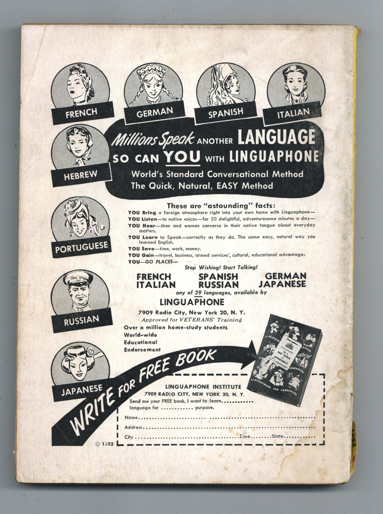Published Sep 1952 by Street & Smith.$2.65- Front cover detached 60%. Cover Wrap Detached. Water damage: Slight.