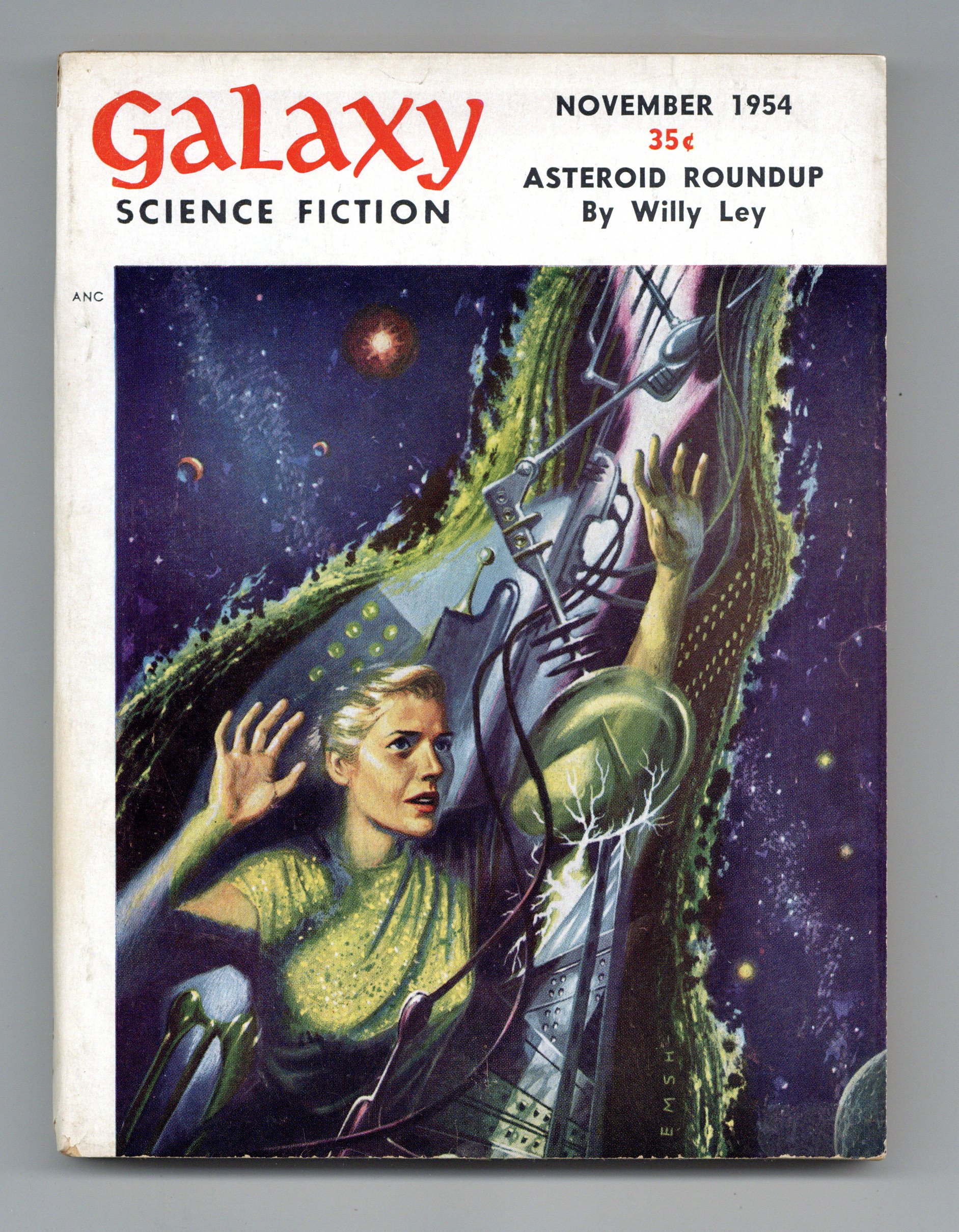 Published Nov 1954 by Galaxy Publications.$44.50November 1954. Cover by Emsh. Stories: "How-2" by Clifford D. Simak, "The Music Master of Babylon" by Edgar Pangborn, "Big Ancestor" by F. L. Wallace, "The Nostalgia Gene" by Roy Hutchins, "The Laxian Key" by Robert Sheckley, "Up For Renewal" by Lucius Daniel, and "The Age of Kindness" by Arthur Sellings. 5.25-in. x 7.5-in.; 160 Pages, B&W. Cover price $0.35.