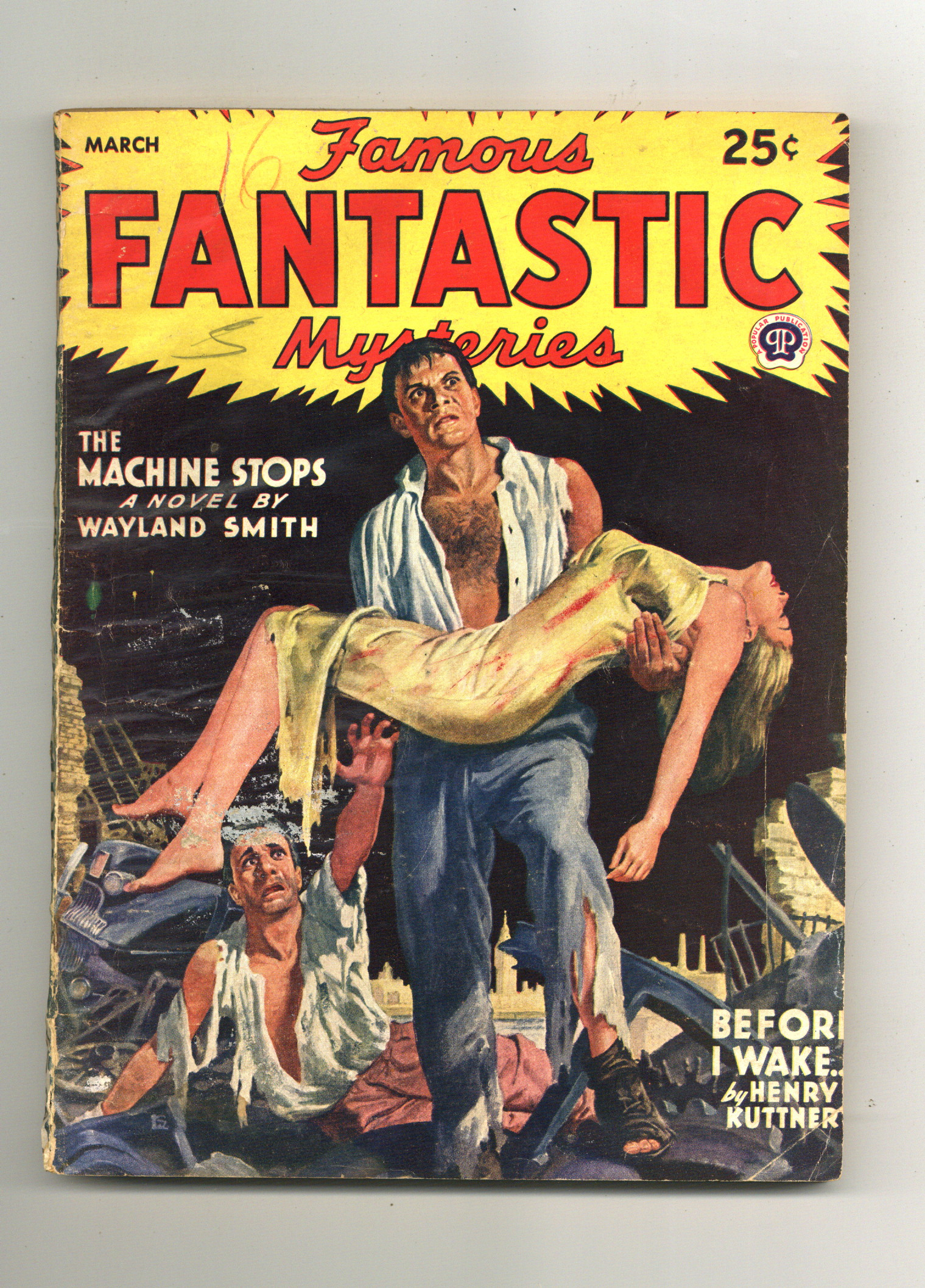 Volume 6 Number 4, March, 1945. Art and Cover by Lawrence. "The Machine Stops" by Wayland Smith, and "Before I Wake" by Henry Kuttner. Softcover Pulp, 7-in. x 9 1/2-in.; 130 Pages, B&W. Published by Popular Publications Cover price $0.25.